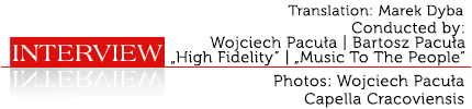 day like any other one. But then we heard: „It's a coincident, obviously, but on the same day you contacted me, I bought myself a new audio system. Actually it's almost the same as the one I had before and was happy about it. But this one is new.” „You” means us, Bartosz Pacuła of „Music to the People” and me of „High Fidelity”. And we contacted Mr Jan Tomasz Adamus, director of Capella Cracoviensis.