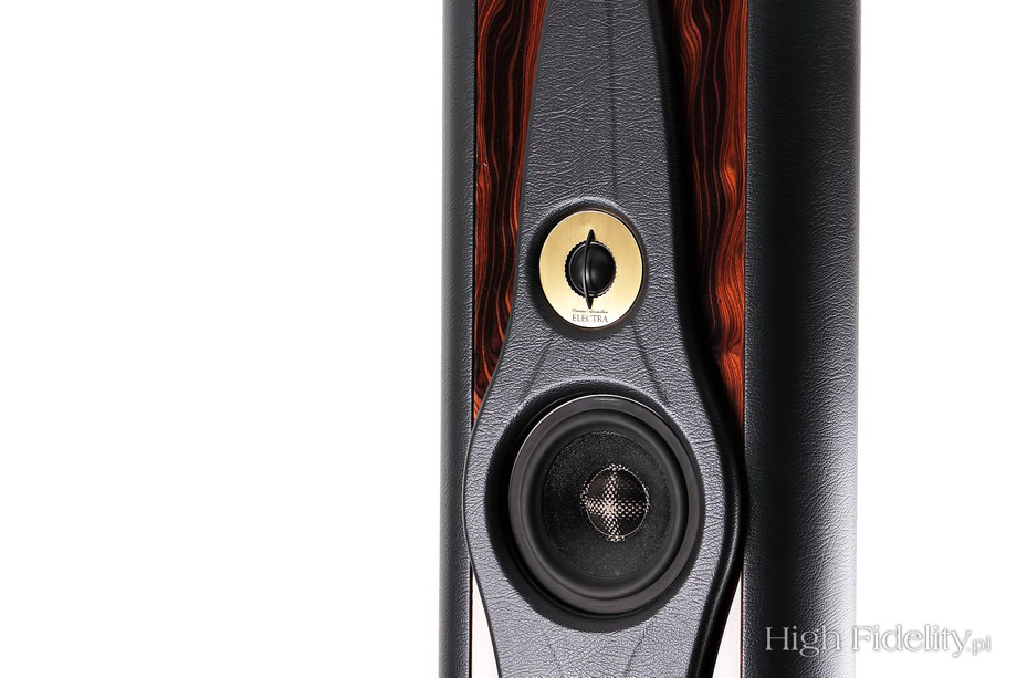 Anyway I started my audition with 4 Scherzi performed by Ivo Pogorelich. This Croatian pianist was a reason of a great scandal in 1980 during The International Fryderyk Chopin Piano Competition. He did not make it through the third round which was a reason for one member of the jury, Ms Martha Argerich, to resign from this jury as a protest against, in her opinion, wrong decision of the jury. I am not a musicologist – when it comes to my choices of music I follow my instinct and emotions. In this particular case my choice was based on the latter – years ago this particular recording was one of the very first that I had a chance to listen using high quality audio system. Electra 3 delivered a wonderful, very clean, selective sound of the piano, with great dynamics, too, despite the fact that this Deutsche Grammophon album was surely not an easy one to play. They used so called 4D technique when recording this album. This technique apart from classic “DDD” from the SPARS code added also a fourth one (more about SPARS HERE). In this technique A/D converter followed directly microphones, so the signal sent to a digital console was already a digital one. Usually A/D follows mixer. Anyway, such recordings might sound a bit “glassy”. Even more so in this case as the pianist technique particularly emphasizes dynamic contrasts. When played on high quality system this is not an issue – there is simply a lot of information in the midrange and treble area. Polish speakers handle this part of the range particularly well. It is obvious that this tweeter performs exceptionally well, and the elements of the crossover are also of high quality. But there is more. Even though I described only a particular part of the frequency range it is not really as one perceives this presentation – Electra 3 sound like a single-driver speakers and it's hard to tell where exactly one driver stops and another starts. After thorough analyses I'd say that frequencies of around 2 kHz carry more energy and the ones below 1 kHz carry bit less. But these modifications are very small and hard to notice. Clarity and coherence are the elements that any buyer of these speakers will appreciate with any played recording. Another very positive feature of the sound is its openness. The woofer in relatively small and so is the cabinet it is working in. And yet I didn't really hear any signs of compression of the sound, easily reproducing all, even sudden changes of dynamics. Bass was not particularly well extended, but I didn't have an impression of the sound being too “light”, not carrying enough “weight”. All three,listened in a raw, recordings - Revolver by The Beatles on SHM-CD, X by Ed Sheeran and Enya's debut on original Nimbus release sounded really good in this regard. It was also easy to notice how differently each of this albums had been recorded and produced. Large size of the speakers suggests a large bass performance. Anybody who listened to many speakers knows from experience that this is not an universal truth. Designers making their choices have to choose some solutions which also means compromises in some aspects of the design – that's how it works. Electra 3 are intended for small rooms. They can be placed near the wall and, if possible, they should also stand close to listener. In such conditions most people will appreciate the fact, that bass extension is somewhat limited. There are many not too big monitors on the market that are able to “pump more air” into the listening room and they even do it pretty well – like, for example Dynaudio from DM line, PMC from Twenty, and others. But one has to realize that they do it at the cost of lower clarity and lesser openness of the sound. You want miss anything in Polish speakers bass as long as you won't play them really loud, or you won't play music that is not subtle but carries a lot of pure energy. Those who prefer some heavy genres of music should probably look for their speakers elsewhere. Summary These speakers take us on a different journey. They offer a trip into world of music where what matters most are colors, dynamics, naturalness and “freshness” of the sound. Separation of instruments is surely not a key element of the presentation – they all are elements of a bigger picture. Such approach is not a mistake – it is one of the possible choices. This presentation actually sounds a lot like we hear instruments playing live. It's a sophisticated performance, open, effortless and most of all – very clean. These are not speakers that will perform at their best when pushed to the limits, but as long as you keep the volume at reasonable levels they will perform great. It is a well thought-through, wonderfully made speaker for true connoisseurs. ![]() Electra Generation 3 is a floorstanding, vented, two-way loudspeaker. Proportions of its cabinet are quite particular. The pretty standard height is 1070 mm (with spikes). As for the size of used woofer width of the front baffle is relatively big - 260 mm. The most unusual dimension is speaker's depth – it's just 120 mm. To ensure proper stability of the whole speaker one has to screw two laser-cut, steel elements to the bottom of the cabinet and then very nice spikes to these elements. There are no protective elements one could use under spikes attached. The cabinets are made of few layers of MDF and reinforced with metal elements mounted in the front and inside. It is finished with one of beautiful natural veneers. Sides, top and some other elements sport black leather finish. Drivers Speakers use a 25 mm silk dome tweeter, that is fixed to the cabinet with few washers made of different materials with different damping properties. It is a custom made tweeter made for Divine Acoustics and it sports a metal front. Designer focused a lot of efforts on vibration damping. One of his proprietary solutions, dampening of the driver's basket, is called BAD - Basket Accurate Dampening, p