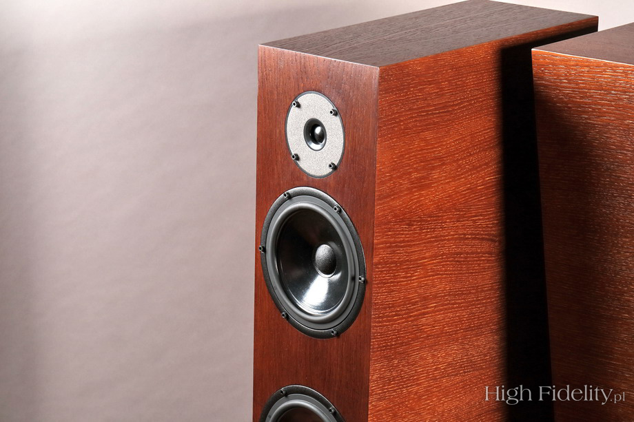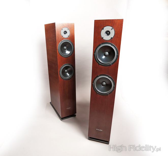 Same goes for Leonard Cohen's Popular Problems – the disproportion between wonderfully recorded back track and poorly recorded vocal isn't so “painful” as usually, everything “sticks” together into a nice piece of music. I'd even say that the back track sounds even more three-dimensional and more harmonious than with other speakers. On top of that comes the impressive dynamics of Diamond 28. Their bass performance is well balanced – bass  extension is good and there is quite a lot of low range presence. At the very low end one might hear an influence of bass-reflex ports, as the impulses don't end quickly but are slightly elongated. If you can place the speakers at least 50cm from back and side walls, or even better 80-100cm away from them, you'll be rewarded with a really well balanced sound that will include a rich, punchy bass but also a sweet an “present” treble. Plus a very nice, enjoyable midrange. All these qualities will be served equally well when you push the volume beyond normal limits, as well as during very quiet, night sessions.   And finally some words on imaging – the ability to combine presentation of a large soundstage with images of particular instruments is one of strongest advantages of these speakers. Pylons render a large scale soundstage which makes their presentation sound a lot like a live performance. Obviously the performance has to be scaled down, but still, as for a reproduction in a room, the scale was impressive. This way we can listen to the music without a need of focusing on particular element and “extracting” it from background and “enlarging” it in our head. It is already provided by the speakers. Images of particular instruments are not very distinctive – to achieve that one needs more resolving and more selective sound. These speakers are also not masters of dynamics “shading”, they won't show us every little change of dynamics, every tiny detail, every change of tonality. They have other qualities though, as described above. Summary Diamond 28 by Pylon Audio will find their fans among people who appreciate proper scale of music reproduction. Ease of sound reproduction and the amazing ability that allows them to “humanize” these recordings that most people won't even play on their hi-fi class systems because of their not so great quality, will cause 99% of potential customers to fall in love with them. These are people just want to listen to the music they like regardless of the recording's quality. Also music streamed from Internet with these speakers will have a new, more “human” face.   Thanks to the slight slanting of the construction an intended visual effects combined with the optimization of phase dependence between the loudspeakers was achieved. The make & finish is very good – Pylon is a manufacturer of loudspeakers cabinets after all. MDF cabinet is finished (not only on the outside but also on the inside) with natural veneer, available in several colors. One might also choose a high gloss finish. Large cabinet is susceptible to vibrations so the design has been reinforced with internal ribs. To make the whole design more stable manufacturer used an additional plinth. It is made of MDF with a lacquer finish. It is separated from the cabinet with a spacer, probably made of some metal. Plinth sports also four steel spikes. Manufacturer adds four small washers to protect the floor but I would suggest replacing them with bigger ones. Diamond 28 is a two-and-half-way, vented speaker. A large bass-reflex port is placed on the rear baffle. Manufacturer for this model chose a soft dome tweeter – the 19mm, modified Scan Speak D2010/8513002. After modification Pylon calls it: Pylon Audio PST 19.T. Two woofers come from Seas – it's the CA18RLY model (Pylon Audio PSW 18.8.CA) with a coated paper cone.   Crossover was built using point-to-point technique – you won't find a PCB there. It sports polypropylene capacitors. The single, gold-plated speaker connector are mounted on a small plate fixed to the rear panel of the speaker. Diamond 28 sport magnetic grills – a solution that improves speakers aesthetic.These are well made, nicely finished, large loudspeakers with cabinets of classic dimensions and proportions.