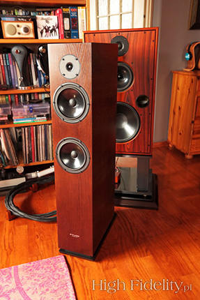 We have written a lot already about this vigorous, Polish company – you will find more details in „PYLON AUDIO in HF” section. History of this company, written without any rush, according to a certain plan, is a story that started with inexpensive models, and then developed into creating new, more advanced and more expensive ones. Each new model proves that company's designers learn, gain experience that allows them to create better products. This progress is also reflected by the names of following lines: Pearl, Topaz, Saphire, Diamond, with the one exception of least expensive line Onyx that was introduced after Pearl. Looking at this history Diamonds 28 seem to be a culmination, a top achievement of the up to date activity of this manufacturer. It's a two-and-half-way speaker, using 3 drivers, still acquired from external suppliers – a 19 mm Scan Speak tweeter and two 180mm Seas woofers. The latter sport a coated paper cones. These are quite large speakers, but they don't look overwhelming in a room due to a narrow front baffle that is also tilted back and metal, shiny spacer placed between plinth and cabinet – both these elements reminded me of  PMC twenty.26. Due to large internal volume and relatively high maximum power (max. 250 W) these speakers can work in large and very large rooms. Manufacturer suggests room with a floor space of 25 to 45 m2.