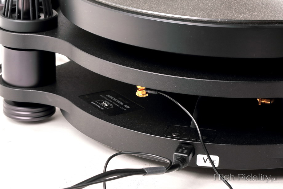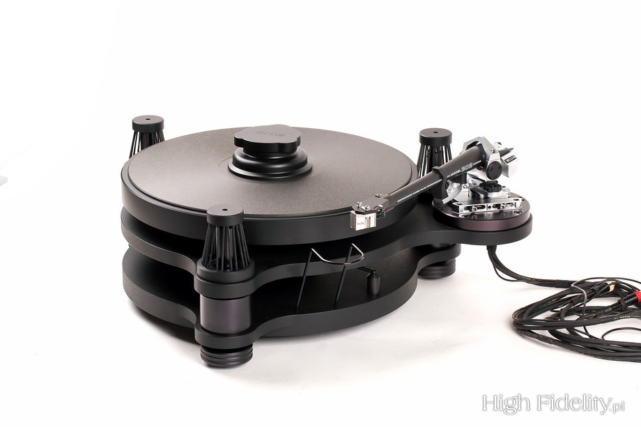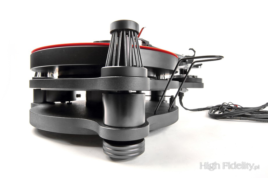 The soundstage is created in front of the listener, between speakers. Within this “window” everything is presented in a particularly orderly, clean, well defined way. It's not only about exact placement of each instrument on the stage, but also about well differentiated timbre of each of them. The latter is particularly important for this type of presentation. This slightly detached performance is compensated or complemented with a particularly good timbre differentiation. And this creates impression of a very rich presentation. The soundstage is quite deep, but it doesn't excel. It can also move closer to listener, even surround him – that's what happens on Jarre’s maxi-single, or the new re-issue of Roger Waters' Amused to Death. I can hardly imagine someone who wouldn't be fully satisfied here. The advantages of more expensive turntables are not that easy to point out. It's like the difference between Air Force One and Air Force Two both made by TechDAS. On one hand difference is obvious, on the other it is really hard to describe it, one has to think really hard before spilling it out. And even than the description might be still ambiguous. The same goes for this SME. Without going into details one might just say that what it offers is a high quality performance, a very “honest” one. Spending more money will give us a richer sound, better definition in both range extremes and deeper soundstage. Soundstage will be also even more precise and there might be less noise from record's groove. There will be some gain in sound volume, and one will enjoy even better impression of instruments texture. Summary This turntable is both – precise and full of passion. It has its limitations but it manages to overcome them so that they don't spoil the pleasure of listening to the music. It offers a well differentiated, colorful, dynamic, particularly vivid sound. SME is able to offer a nice, interesting sound even when playing less-than-perfect records like, for example, digitally recorded Brothers in Arms, or Julie London album recorded using solid-state equipment in 1958. The shortcomings of such recordings are perceived as a certain flavor, a curiosity and not a flaw as such. It is one of the products that will be offered for years and won't need any improvements. It will also set a bar, pretty high, for many other manufacturers who will treat it as a reference. ![]() Model 15 is a suspended design but with relatively heavy sub-chassis and platter (4,6kg) – together they weight 11kg. Whole deck weights 18,5kg. Its shape seems to be a combination of those of Model 10 and Model 20/3. It seems that designers decided to reject all unnecessary elements. What was left was almost round shape with diameter only slightly bigger than platter's. Plus there were these three pillars with 30 O-rings used to suspend sub-chassis. To prevent horizontal movement an additional O-ring was used under chassis that pulls it in the opposite direction than the belt. Model 15 sports a substantial clamp with a shape that shadows a shape of the whole deck which makes it very comfortable to use.