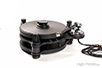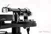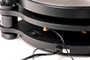 The pillars and motor are mounted on the chassis. Turntable is driven by a 3-phase, brushless outrunner inductance motor with 8-pole Neodymium magnets and 3 integrated Hall position sensors. The electronic motor controller uses a high performance microprocessor, optimized for motor control. The controller looks really nice and it is easy to operate. Small buttons are used to turn on and off selected speed - 33,3, 45 or 78 RPM. Belt drives a sub-platter and the main platter is placed over it. SME uses a wide, flat belt. Motor sits under the platter so it is not visible. Platter is extensionally damped, the top surface being diamond-turned with a fine scroll. This method of finishing upsets a myriad of tiny fibers which interface with the underside of the record. A perfectly executed design. |