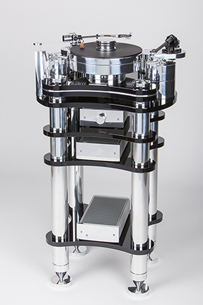 In both versions a double synchronous motor is placed inside a heavy, aluminum housing. When two motors are used they should be placed on heavy bases within proper cut-outs in decks base. They should be connected with a large Konstant M2 Reference power supply that also synchronizes both motor together. It also allows electronic speed change. The turntable weights around 26 kg and measures 450 x 400 x 180 mm. Tonearms Standard version of Zet 3 is delivered with TR 800-S arm, which is an OEM version of Jelco ST-250. I have to admit that I like it a lot despite the fact that it is quite a simple design. And the 12” Transrotor TR-5012 is without any doubt a much better arm. To mount it on this deck one has to replace an armboard for 9” tonearms for a 12” one. But if you do it don't throw the 9” one away – it might come handy if you decide to use second arm. TR-5012's cable is terminated with a 5-pin DIN connector. Arm comes fitted with Van den Hul D 501 Silver Hybrid cable. Transrotor also offers few models of phonostage, including a fully balanced, two-box one. If one keeps the replaced armboard one might use it to mount a second tonearm. In my case it was used for a 9'', “S-shape” SME M2. It sports a detachable headshell which allows user a fast interchanging of few of the with different cartridges. If you do that you' be very close to becoming a... Japanese. Rack The rack that I also received for this test was the first unit that distributor ever brought to Poland. It was designed to aesthetically match Zet 1 and Zet 3 decks. Three lower shelf, that might be used to place a phonostage, even a two-box one, have the same shape and thickness as the acrylic elements of turntable's chassis. The top shelf is bigger as it has to accommodate not only the deck but also twin motors.   The shelf are supported with massive, thick, aluminum pillars. They are fixed with solid, brass screws. At the bottom one finds four, large cones ending with ceramic balls – same ones as used for TMD bearing. These are placed on four, large aluminum discs. A turntable placed on this rack look simply fabulous – it is not just a deck anymore but a piece of an applied art. What's more – the design does not look massive at all. Place you Zet on this rack and it will attract attention of every visitor, audiophile or not.  Specifications (according to manufacturer) Chassis: 45 mm thick acrylic-aluminum sandwich  |