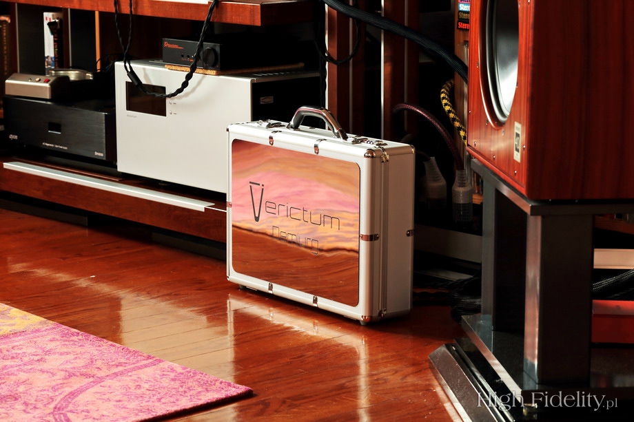 Cables I compared Demiurg to offer more expansive sound with Harmonix being a leader in this respect. There is an emphasis in the lower midrange and upper bass which results in more tangible phantom images presented closer to the listener, richer, rounder. Demiurg shows events on the stage from some distance, without any signs of emphasis in the lower midrange/upper bass, which creates this impression of 'quieter' sound. When comparing Verictum with other cables one should slightly (1-2 dB) volume level for this power cord. It will prove that its performance is more dynamic. One should do the same when comparing 16 and 24 bit files. There is something that attracts attention. One can easily hear that when listening to jazz, rock and electronic music, like, for example, Depeche Mode remixes. Other cables' performance seems, in comparison, more round, massive. Demiurg's bass is not that rich, but it's better extended and defined, especially in the lowest end. It is clear when listening to both, double bass and electric bass, and electronic one too. What some might like better about these other cables is more advanced 'integrity' of their performance. They offer bit less detail, a tad lesser control, and their dynamics is not as perfectly differentiated. But the integrity, coherence of their performance is bit better. Demiurg presents soundstage with great clarity. The main focus, the essence of the presentation lays in the middle of the stage, left and right sides are filled with details. With Acrolink, Crystal Cable and Harmonix this middle, more 'essential' part of the stage seems wider and deeper. And phantom images are better defined which results in more tangible sound. Summary This cable kept me curious about how many well known albums would sound with it. Differences introduced by it to the sound are very clear and the same each time whether it plays sophisticated jazz or classical music recordings or mainstream ones. No doubt it is a representative of the top-high-end level and it matches the performance of my reference cables in many respects. Everything about it, including its packaging tells user that it is a luxury, top performance product.