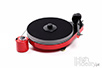 Let's start with a general impression: this turntable offers a warm, deep, rich sound, but with an open top and well extended bass. There is slight emphasis placed on a soft mid-bass and on part of upper range responsible for an open presentation of vocals. Initial assessment of correctly set up Carbon says that it is a 'warm' sounding turntable. This impression might even be even deeper if this deck is used with other components of similar sonic character, say with Clones Audio 25i amplifier, Epos K2 loudspeakers and Pro-Ject, model E phonostage. This impression might be somehow influenced by the way this machine plays vocals. These are particularly prominent, present, palpable and presented close to the listener. Even with such poor quality release as the re-issue of 1973 The Best of Bing (MCA) album, with voice being masked by noise a cracks, this aura that involves listener in the whole musical event is still present. All these technical imperfections won't be gone. pops&cracks will be there, but richness and presence of the sound will be as distinct as when you play a fantastic Speakers Corner re-issue of Ella Fitzgerald Sings The Cole Porter Songbook on a double, 180g vinyl. Large portion of my listening session I spent at nights listening via headphones. Sound Carbon delivers is so immersive that I couldn't help but wonder how this or that album could sound like played on this deck. I even listened to few albums for the first time using this Pro-Ject and even Julia Holter from Have You In My Wilderness, that we had graded rather poorly before, sounded OK, well, even more than OK – it was enjoyable this time. This deck with this cartridge brings out something more from recordings than just melody, rhythm and details. With this sort of midrange presentation I found it surprising how fast the sound also was, how good was pace&rhythm, how real timpani's and drum-roll's timbre, how well even bright guitars sounded like. Also bass was nicely extended, which was sort of Achilles heel of all Pro-Ject's turntables in the past. The less expensive ones had problems with lower end control and definition, the more expensive ones, including those of RPM series, offered bit dry, not rich enough bass. It could be corrected with proper cartridge, phonostage, but using particular components should not be about correcting problems with other elements of the system, but about supporting, complementing them. Carbon presents rich, almost 'fat' bass – it is well defined, with proper attack and decay phase but also with proper sustain. Of course, as every other design, this one also has its issues. These are not more significant than the ones of competitors from the same price range. Unlike with many other Pro-Ject models, pops&cracks on RPM5 Carbon are quite loud. It is simply a particularly resolving device and its treble is not rolled off. Expensive turntables tend to place pops&cracks 'behind' music, in a different plane, thus removing them from the center of attention. Carbon does not emphasis them, doesn't hide them, it delivers them just the way they are. So the owner should keep his records and stylus clean. Don't expect particular depth of the soundstage. It shall be proportional, dense, full, but not particularly wide, nor deep. Focus is on the events in the front of the stage. Everything that's happening behind is there, has some weight, but there was no impression of real depth. I also never felt as if there was lot of treble. I mean it was there but it didn't have that much energy. Summary RPM5 Carbon stands out not only by its appeal but also with its performance. It offers, especially in the mid-band, a combination of highly resolving and vibrant sound. All records sound good with it, which makes it a true all-rounder. I haven't had a chance to audition new, 'carbon' versions of RPM9.1 and 10.1, but basing on my experience I'm going to risk an opinion that RPM5 Carbon is the model with best price/performance ration. And it looks great in 'Ferrari red”! If you're ready to take proper care of your records' cleanliness and you don't mind this blue LED this might be a turntable for many years. ![]() As I mentioned at the beginning RPM5 Carbon is a successor of RPM5 model that's been in production for many years. It features a water drop shaped base, with tonearm mounted on its narrow side. Deck can be leveled using adjustable feet. These are three large spikes placed around main bearing housing. Motor is placed next to the deck. Manufacturer provides a proper template that helps to establish a proper distance between motor and deck. Speed change is performed manually by moving a belt from a smaller to larger pulley or other way around. Usually motor is placed on the left side of the deck, close to its rear. But I've been using a different placement for years – I rather put it on the front left side in line with the tonearm's and main bearing's axis. One advantage of such setup is better bass definition and the other is better access to on/off switch. Although is this case the blue LED might blind you... The 15V AC motor is powered by a small, outboard power supply. Turntable features a 300mm acrylic platter. A felt mat is placed on top of the platter. The platter features a steel spindle and a hardened brass bush – a part of the inverted main bearing. The platter rests on a small ceramic ball. The 9cc EVO Carbon tonearm's effective length measures 230 mm with 18mm overhang. It's a very light arm – just 8 g, so it is suitable most of all for medium to high compliance cartridges. It features arm bearing housing of solid ring type. The massive outside ring is open to avoid resonances. Arm sports classic anti-skating solution – a small weight hanged on a thread. Tonearm features also azimuth and VTA adjustments.