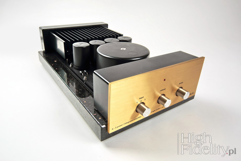 The three-dimensional image opening between the loudspeakers has its own character. I had to think a little, to define it and describe it properly. But I finally got it mainly thanks to classical vocal recordings. It is about some emphasis in the lower midrange. Listening to Vivia Genaux (mezzo-soprano) and Simone Kermes (soprano) album Rival Queens, I heard an open, sweet voice of Kermes (who delighted us singing during the 2012 Mysteria Paschalia festival) and a slightly darker, both in terms of timbre of the singer, but also of the way it was presented by the amplifier, voice of Genaux. Interestingly I couldn't notice similar influence when listening to males voices. Dietrich Fischer-Dieskau's voice in Schubert's repertoire sounded powerful, dense, deep, but there wasn't an impression of emphasizing lower range of the voice. The accent placed this way, combined with fantastic resolution and imaging, promotes recordings of acoustic instruments on the one hand, and on the other the music with electric guitars playing an important role. The new album with SBB group's concert recorded in Sweden in 1975 sounded wonderful. Equally beautiful was the presentation of Kurylewicz Quintet's album Go Right, with an amazing spacing and excellent timbre accuracy. The density and high resolution - a combination of these features makes the A-3 sound as a huge, powerful amplifier from the top shelf. One of the AA amplifier's features is a possibility to shorten the signal path and use adjustable output of the CD Player to control volume. Comparison of the potentiometer in the A-3 and AIR V-edition's variable output gave a very clear outcome: if your player has adjustable output you have to try it. It should give you a bit more 'present' performance and better defined sound. The difference is not large, it'd say it is about 3-4% improvement, but it is worth it to fight for it. But I think it will work only when the CD Player features analogue volume control. Digital volume control might work well to but only in the really expensive equipment, where it is just an added function to make a device more attractive, but rather where it is a full-fledged feature. ![]() SECOND OPINION