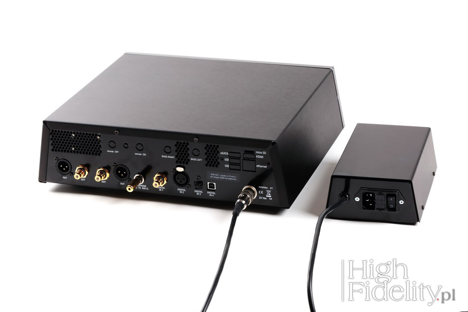 He would be wrong, who based on these few paragraphs would find that it is a unremarkable, clinical, and even "neutral" sounding device. Vincent's converters, including the d1-single-mk2, interpret recordings in a soft, gentle way. They do not add lowest bass notes if these are absent in the recording, they do not wow listener with unnaturally vibrant bells, when it does not make sense. Most of our attention is focused on the middle part of the range. I think it is so mainly due to the best resolution for this part of the range. Plenty of information that is delivered to our ears make up a warm whole. The top and bottom of the range are also a little warm, but to a much lesser extent than the mids, especially its lower part. There works the law of multiplication by cooperating - in this case with the upper bass. This part of the band is powerful, deep and beautiful. The lowest bass does not appear often in its full glory. With classical music, also with piano, with jazz, it seems that there is exactly as much bass as needed. But when we play something with more power, for example Kendrick Lamaara, we want to have more of even richer bass. The quality of the bass is outstanding, it is not too taut, but the focus and control are great. But then, just as the upper treble, it has a lower energy. This will matter mainly when club music, dub, electronic is played - where it matters musically. Already with the new Pet Shop Boys album Super, there was as much of everything as this music needed. Once again the ability to deliver fantastic midrange including its upper part was confirmed. d1-single-mk2 as a headphone amplifier When I was ordering the converter for the review, I was asked by Vincent to specify which headphones would I use. He immediately rejected the HiFiMAN HE-6 due to the very low efficiency, so a natural candidate were so Sennheiser HD800. Knowing that totaldac owner could matched output impedance of the internal amplifier to the impedance of said cans. Such a setup sounded differently than what I've heard using loudspeakers. The tonal balance shifted up, with a strong emphasis on upper midrange, without the low bass. It was not a bad sound, it was actually very good. First of all due to the extraordinary purity across the whole band and high dynamic range. But the high energy elements playing above 800 Hz were presented more in the front, like a trumpet with a silencer on the Kurylewicz Quintet Go Right album, or snare drum in the Twenty-something by Pet Shop Boys. One of our Readers pointed out to me that I have in my collection also another excellent headphones - AKG K701 – so I had to use them too, despite the fact that totaldac was not “prepared” for them. Apparently it is a versatile design, because this combination proved to be the best. It delivered a denser, lower based sound, with more tangible instruments. The spacing was not as spectacular as before, but just in this respect Sennheisers are unique. Everything else improved. It's a good quality, solid headphone amplifier. It can easily replace separate units that cost 2000-3000 PLN (remember that to that cost one must add a price of a good quality interconnect). d1-single-mk2 as a preamplifier My reluctance towards sources with variable output comes from the fact that a separate, high quality preamplifier contributes to the dynamics and richness of the sound, saturates it. There are, of course, systems designed from the start to work without a separate preamplifier. How well they work with devices from other brands is sort of lottery though, so it's hard to call this solution versatile. Vincent's DAC though sounded great when combined with my Soulution 710 power amplifier. Was it just a coincident that these two devices worked so well together? I don't know, but this power amp usually sound better paired with active preamps. This time, the elimination of the Ayon Spheris III from signal's path resulted in a more direct sound. The leading edge was faster and clearer. The front of the soundstage was brought closer to me and the back even further away, which created the effect of extended soundstage. Using separate preamplifier gave denser presentation with lower, deeper bass foundation. Vocals with it were delivered with slightly warmer upper part and with tempered sibilant. The dynamics was not, however, higher and bass focus was not as good. Also transparency was not as good as with the direct connection between DAC and power amplifier. Therefore, I'd say one needs no separate preamplifier between d1-single-mk2 and power amp, one will lose a bit but gain much more. Summary d1-single-mk2 is an extremely good DAC. It delivers a precise, resolving sound, but also slightly warm and vivid. It is very clean and differentiates recordings really well. It has a tonal balance placed slightly higher than Exogal Comet Plus and CEC DA0 3.0, but still delivers a substantial, rich sound that is simply more open. Headphone amplifier is a nice feature, and the volume control is good enough for one to give up using a separate preamplifier. It's a DAC for all music fans – those who love rock, jazz, and classical music; it does not discriminate against any kind of music. It does not fall far behind my Lektor AIR V-edition CD Player in terms of sound quality. It is just slightly less detailed, it is also not so expansive and renders a narrower soundstage. In direct connection with a power amplifier it offers faster sound and a better focus in lower midrange and bass. It is also more resolving. This is really something. ![]() d1-single-mk2 is a two-box digital-to-analog converter with integrated headphone amplifier and adjustable (in the digital domain) line output. It features four digital inputs and an unbalanced analog output on RCA and XLR jacks. The digital inputs: AES/EBU, RCA, Toslink and USB - support PCM signal from 16 to 24 bits and up to 192 kHz; USB input is asynchronous. One can also order (at extra charge) an option of