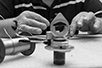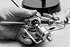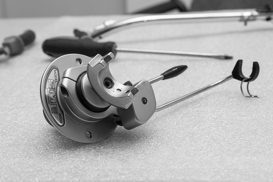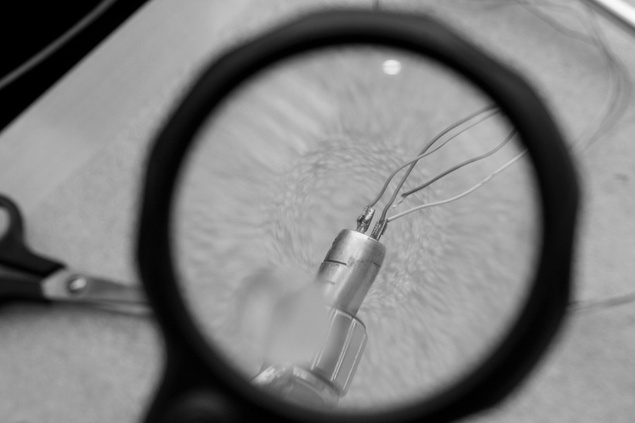 Our Lenco turntables use two versions of drives: L 75 and L 78. The drive mechanism can be as close as possible to the original, ie. with all the writings, or after complete dismantling, painted in black with gloss finish. The drives are of course serviced and properly adjusted. An important element of the drive is the idler wheel that is carefully examined. There are two versions of the chassis for the drive and the choice depends on the installed arm. We use two types of arms: SME 3009 and 3012, that is, 9 and 12 inch arms, in the two oldest production versions, ie. S1 or S2. The arms are dismantled to the smallest part - the bearings are serviced, tested and maintained, we do replace internal wiring, usually we use braided silver [you can check this out on the pictures in the gallery below - ed.]. The internal tonearm cabling is directly connected with the RCA outputs on the rear panel.