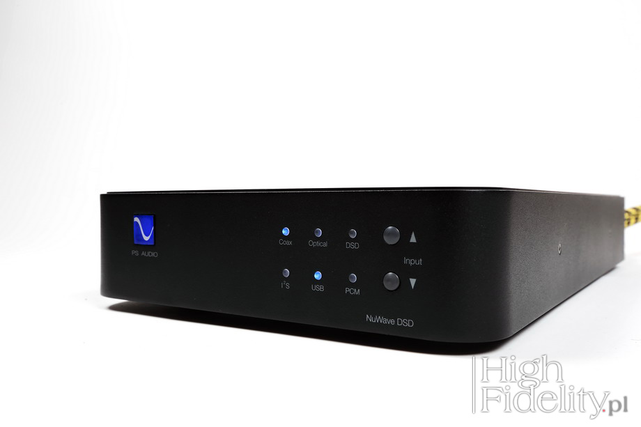 The fans of DSD encoding claim that it is very similar in nature to that of an analog master tape from which it was copied, and if the registration is made directly in the digital domain (DSD) is it closer to the real events than one encoded in PCM files. I will not elaborate on that, but I will say that my experience tells me that, that indeed, there are some qualities which make the sound obtained with this type of signal very attractive. The DAC under review applies them to each signal, regardless of whether it is sourced from CD, hi-res PCM or DSD file. We must therefore say that the promise made by the manufacturer in the description of the products, according to which the CD will play in a really unique way is really fulfilled. Provided that we agree that this is kind of interpretation to which all recordings are subjected. But it is really good. Even more so because it is a – relatively, of course - inexpensive DAC. It is well made and it delivers a really good performance, with a strong lower end, sweet top and warm, close midrange combined with very high dynamics. It's a very similar way to build sound to what we know of the more expensive devices, such as Exogal Comet Plus DAC and said Amare Musica. It's not a coincident, since both these companies treat DSD format as THE RIGHT ONE for encoding and playing music. NuWave DAC is much cheaper and still follows the same idea and does it in an equally spectacular way. What distinguishes it from both above mentioned products, it is mainly slightly lower resolution and not so good definition. There is no shortcut for that, one needs to pay more money to get it. But even at this price level we already get a lot of what the more expensive devices have to offer. I.e. naturalness and softness that characterize live sound. That's not all, there are other elements of the natural sounds that are not fully realized here, but it does not change the fact that it is a very good performer. Especially when we use it to play high resolution files. There is no information available on conversion of PCM signal to DSD in NuWave DAC, which is clearly described for other devices. And yet, the 24/96 and 24/192 files sounded similar to DSD files, even the attack was formed in a similar manner. Just in this case, DSD files had even higher dynamics and were more tangible than PCM ones, but this may be caused by designers' – perhaps even subconscious – preference of Direct Stream Digital. However, regardless of what type of file I played, as long as it was a 24 bits one, it sounded more relaxed and less muffled than a CD. This is the case, when for owners of this type of DAC it actually pays to invest in the high resolution files, preferably DSD. A sound one shall get from them will not be totally different from the CD, it won't be day and night type of difference. One will notice changes, which may seem subtle, but if achieved by replacing a system with a higher quality, more expensive one, one would have to pay a lot of money for it. Here you can just buy a hi-res file rather than rip a CD and the effect will be similar – fuller, richer, more spacey sound, more poignant sense of the performers' presence and thicker, blacker background. Summary There is not much to add to what has been already written. This is a beautifully made device featuring a lot of inputs offering a beautifully voiced - within a certain aesthetic - sound. The device delivers an attractive performance that will help systems at this price level sound in a more natural and emotional way, and in bit more expensive systems it will not lower their sound quality and even allow them to sound more "analog" (quotation was used deliberately). RED Fingerprint. ![]() The PS Audio NuWave DSD is digital-to-analog converter with a fixed voltage output (ie. not adjustable). Its proportions are chosen so that it seems even smaller than it actually is. The front wall, with rounded side edges, has a width of 210 mm, exactly half of a classic size device. DAC is also not high, but relatively deep, measuring 360 mm. And it is heavy, which is particularly surprising. The enclosure is made of aluminum with an acrylic top. Front features only few elements which creates an impression of order, what was probably designer's idea. There are six blue lights, four of which indicate the selected input and the two signal type - PCM or DSD. The unit automatically synchronizes with an active source. We can, however, also select input manually using two buttons. On the left side there is an illuminated logo and that's it. Thus, no information about the sampling rate or word length. Housing is available in black and silver. The rear panel of the device is more classic, so to speak. In addition to the IEC mains socket with a small mechanical switch (manufacturer recommends leaving the DAC on all the time) there are also digital inputs and analog outputs. There are four digital inputs: USB, I2S, TOSLink and RCA. I2S is unusual, because it utilizes a HDMI socket. It makes it easy to acquire a high quality cable of any length for this connection. Other companies using this format for the transmission of data use Ethernet jack (Ayon Audio, Pro-Ject, Accuphase etc.). All components are installed in this device on its “back". Unscrewing the bottom will allow you to see that the transformer and PCB are bolted to the upper wall. It is made of aluminum, but from the outside it features a black acrylic sheet which has a decorative function, but it also dampens vibrations. The RCA input accepts PCM signal up to 24/192, TOSLink up to 96 kHz, and USB and I2S the PCM signal up to 24/192 kHz, also DSD64 (2.8 MHz) and DSD128 (5.6 MHz). USB input operates asynchronously. All incoming signals are routed directly to the FPGA in a "Native Mode", i.e. without upsampling and interpolation. This chip detects the sampling frequency of the input signal, overclocks it, hence reducing the jitter, and filters it. The chip comes from Xilinx