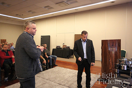 A lot of excitement among our guests was raised when Jacek shared information about a truly audiophile setup he uses in the studio. Most likely he is the only man in Polish professional/studio industry benefiting from all audiophile inventions, including cables. Jacek is thus a person of unique knowledge, sort of a liaison between “our” (audiophile) and "their" (pro-audio) worlds. This resulted in many interesting and sometimes funny stories and anecdotes, Jacek also answered many question from the audience. Many of these questions concerned Jacek's own product, high-end speakers called Bauta. We couldn't see these impressive floorstanding speakers in Warsaw, but the scale of interest in them begs the question whether Jacek Gawłowski should present them to Polish audiophiles in the near future. Who knows, maybe he will. A FULFILLED PROMISE KSS's 106th Meeting (and the second official one held in Warsaw) was important for one more reason: finally, fulfilling their promise, members of Krakow Sonic Society participated in it, and not just some of them but most. According to out tradition I asked them to share their impressions.