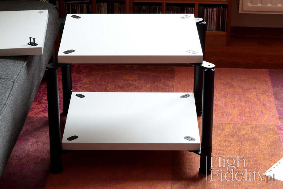 However, even with two shelves tightened really well, this is not a super-rigid construction, mainly because shelves are parts of it. Despite this, the three-level rack had no problem supporting the, weighing 41 kg, Kronos Pro Ltd turntable.
