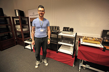 Paweł Skulimowski during Audio Video Show 2016, and behind him you can see the first version of the Modular rack; an interesting fact - Paweł designed his tattoos himself… The goal was straightforward: I wanted to make something visually simple and not as expensive as my current exclusive Wood Block line. This didn't mean though, that it was supposed to be something "Made in China". I guess everyone knows that it's not what I do in Franc Audio Accessories ... In Modular I used materials and technical solutions, of which I am sure they work, that proved themselves (in my other products) and that were highly acclaimed by many reviewers and a whole lot of customers in Poland and abroad. I used, for example, ceramic Tablette feet, which are, for example, a direct insulator of shelves in my top Wood Block Rack and in all Wood Block platforms. So I didn't go cheap here. As for the quality of the above mentioned "Tablettes" - just have a look at my website to the OEM tab and check the constantly expanding list of companies that use them for their devices.
