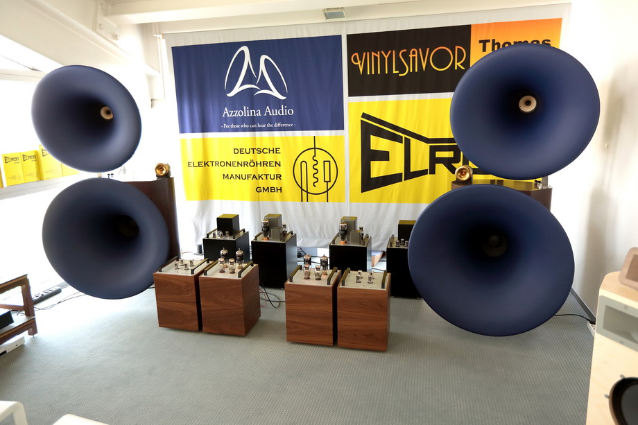 - Enormous Azzolina Audio The Sfera horns and equally big Deutsche Elektronenröhren Manufaktur amplifiers. The latter make use of Elrog triodes.