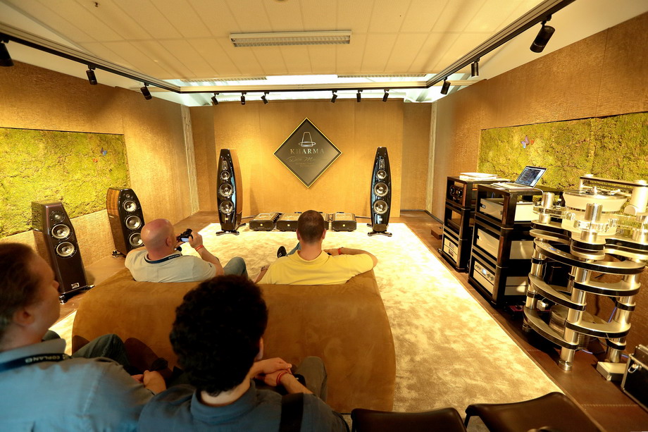- A beautifully prepared and good-sounding Kharma company room. Number one were the Veyron EV-4 speakers equipped with new Kharma Omega-F drivers. The cables used were the new Enigma Veyron. There were two sources – the Clearaudio Statement turntable and the Vivaldi SACD dCS player.