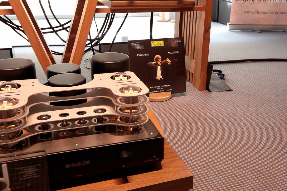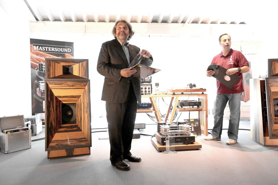 - One of the most interesting presentations – Mr Giulio Cesare Ricci, the owner of the record company Fonè in the Blumenhoffer room. Mr Ricci records classical music and releases it on LPs as a limited edition of 496 copies, as well as on tape. The presentation compared the two formats. The speakers in the photo are the Gran Gioia Mk2 model.