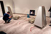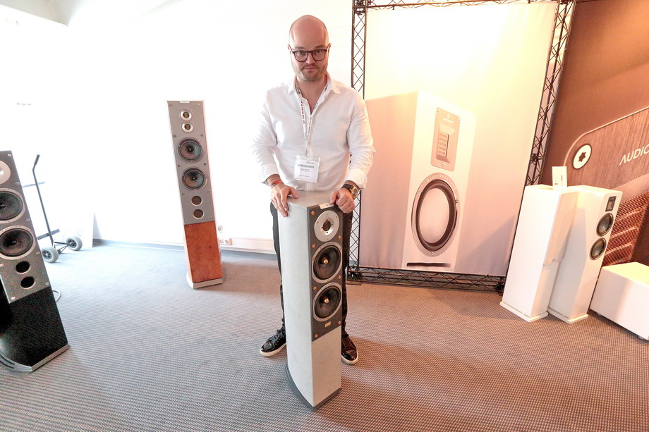 - Mads Klifoth with his latest creation, a special version of the Audiovector QR3 speakers. Their housing is finished with a thin layer of concrete (it looks incredible), the tweeter has been replaced with an Avantgarde version, phase correctors are now gold-plated, cables have been changed, etc. The aim was to show what these constructions can do.