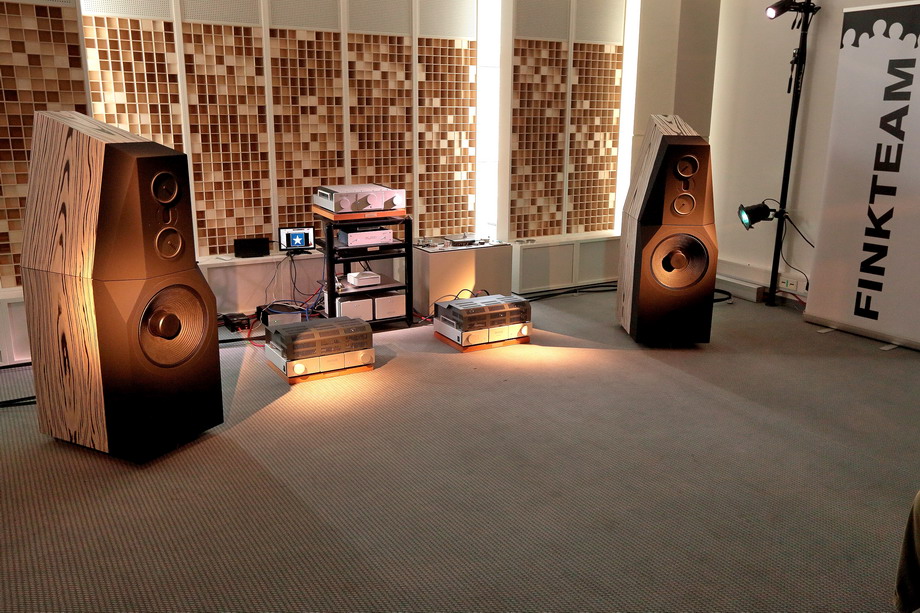 - The system in the FinkTeam company room, with two sources – the enormous Telefunken reel-to-reel tape recorder at the back and a small file player. Karl Heinz Fink had prepared the WM-4 speakers powered by Octave electronics. The speakers weigh 135 kg and cost €65,000.
