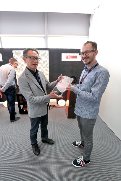 A moment for a selfie with the “High Fidelity” award – Mr Reiner Weber, a constructor from the Keiser Acoustic company (on the left) and Mr Masaki Ashizawa, a constructor and the CEO of Kondo