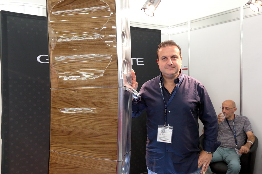 - Mr Maurizio Aterini, the owner of Gold Note, next to his largest speakers.