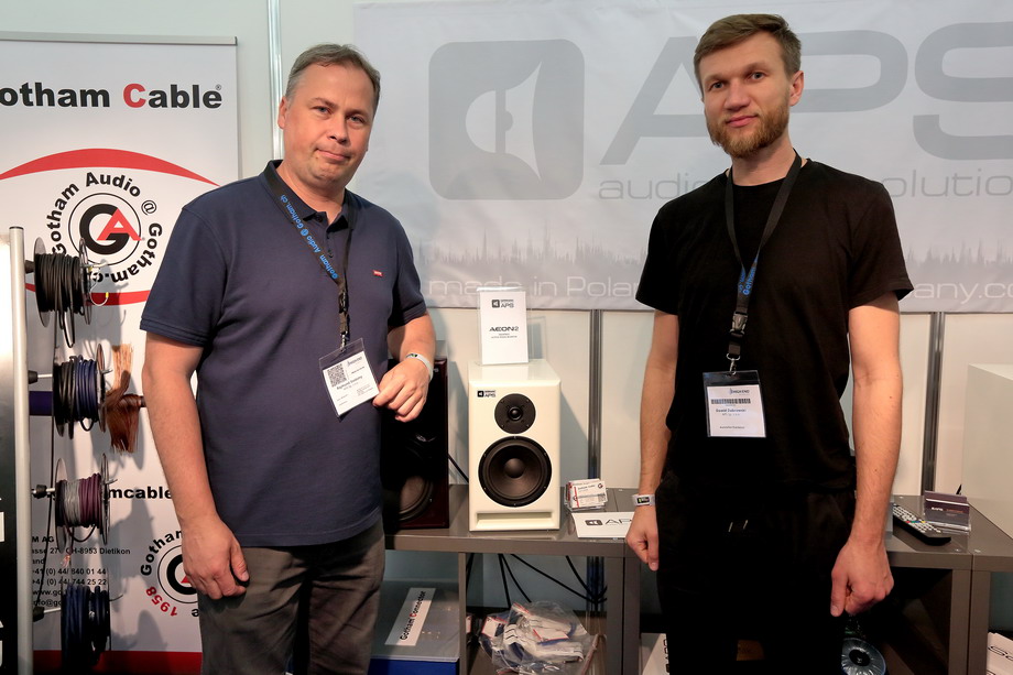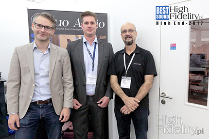 - Mr. Rajmund Stodolny (on the left) and Dawid Dąbrowski, with their new speaker in between – the Germano Acoustics APS AEON 2 that we are going to test in HF.
