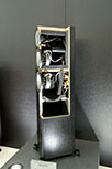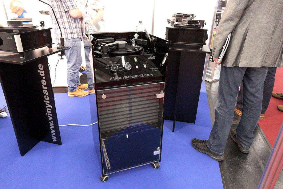 - The little wheeled cupboard is the Hannl Washing Station system which automatically washes vinyl discs.