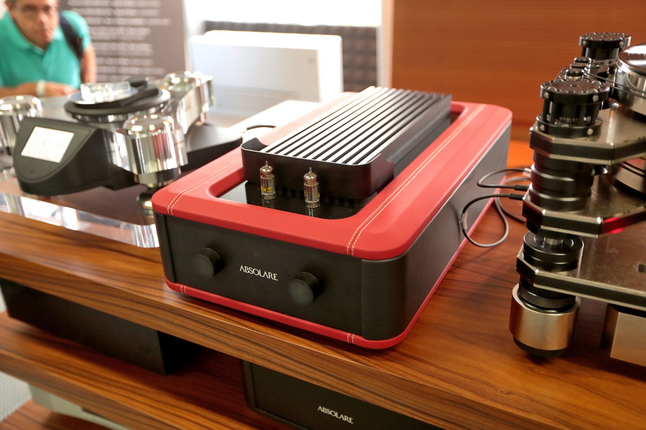 - One of the most beautiful amplifiers at the exhibition – the hybrid Absolare Hybrid Mono Amplifier with a lacquered leather finish.