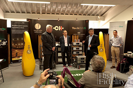 The turntable operated in a full, top-of-the-line CH Precision system, with enormous Vivid Audio Giya G3 speakers having a brilliant yellow color. It appeared very quickly what the greatest advantage of the new motor is – after a few bars of the first musical piece, one metal woofer grille fell off – the woofer excursion was simply incredible. Then, another one fell off and the remaining two were quickly removed by Mr Nishikawa-san’s assistant. It is all about incredible dynamics. It is a turntable that produces unbelievably clear sound, characterized by almost as good resolution as a reel-to-reel tape recorder. Anyway, dynamics was number one. Takeshi Inomata’s album The Dialogue, released in 1977 by a Japanese specialist in “absolute sound”, Audio Lab Record, was played at the end of the presentation. The percussion sounded live. What I always hear while listening to recordings, i.e. compression and a characteristic “microphone” sound did not exist there. It was real, live percussion – one of its best reproductions I have ever heard. techdas.jpBEST SOUND | HIGH END 2017