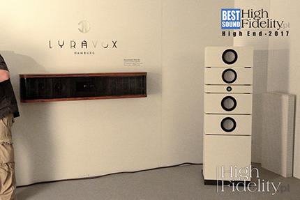 Lyravox, a company with a seat in Hamburg, came across as brilliant when it offered integrated music systems completely different from any other ones (at least at first sight), during the High End 2015 exhibition two years ago. Perfectly made and designed, they were a sort of “soundbars” for people with imagination and money. In systems hung on walls, there was a CD player, a Bluetooth receiver, a set of amplifiers with DSP correction and speakers. The sound was simply charming. This year, when I was going to a meeting with Mr Götz von Laffert, who founded the company with Mr Jens Wietschorke (Wieczorek in Polish maybe?), I thought that he wanted to show me another version of the concept. Imagine my surprise when I saw enormous floor standing speakers at the entrance to the exhibition room. Karl, accompanied by its smaller version – Karlotta, is a technologically advanced active system based on ceramic Acuton speakers and a Scan Speak woofer. The system is equipped with an audio file streamer, eight D-class amplifiers, (500 W each) and a DSP system, correcting the phase, amplitude and crossover filters.
