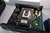 - Another CD player, this time from the inside: the Audio Exclusiv P 8. As it can be seen, it uses the Philips Pro 2 CD drive, has got three separate amplifiers and a tube output; the front is made of marble.