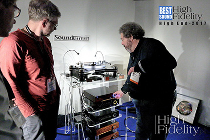 Mr Peter Ledermann himself In this tiny room, where the Soundsmith company celebrated its birthday, Mr Peter Ledermann presented the most expensive cartridges incorporating the Strain Gauge technology, using the VPI turntable and the Alto tone arm designed by Frank Schröder, built under a licence by Soundsmith. The sound was presented using speakers designed and built by Peter Ledermann himself. These tiny devices produced fantastic sound. There was everything that I already know from cheaper designs of this manufacturer, i.e. warmth and almost no crackling sounds, with an incredible insight into a recording.