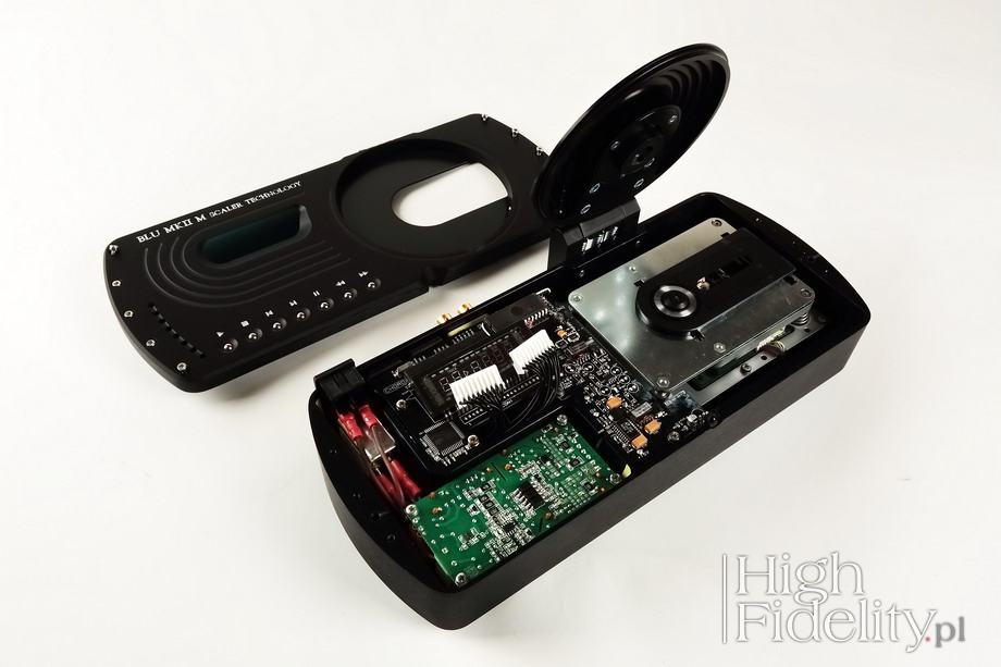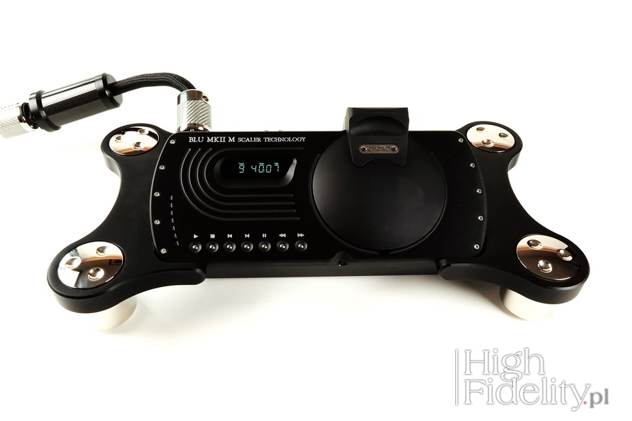 Transport's chassis design is typical for the Choral series of this manufacturer, designed personally by the company's director, Mr. John Franks. It is a rigid shell made of two small milled aluminum elements - the device measures 333.5 x 98.5 x 142 mm and weighs 7 kg. It can either be placed horizontally, or at an angle, on a rack specially prepared for Blu and DAVE. On top there is a heavy, hand-locked lid, a small (too small) VTF display and several buttons. There are not too many of the latter which is good – the Mk I was really packed with them. Outputs and inputs are located on the rear panel, There are two digital inputs – USB and BNC – signal from these is treated the same way as from a CD, ie it is scaled up before feeding it to DAC. As for digital outputs there are more of them: