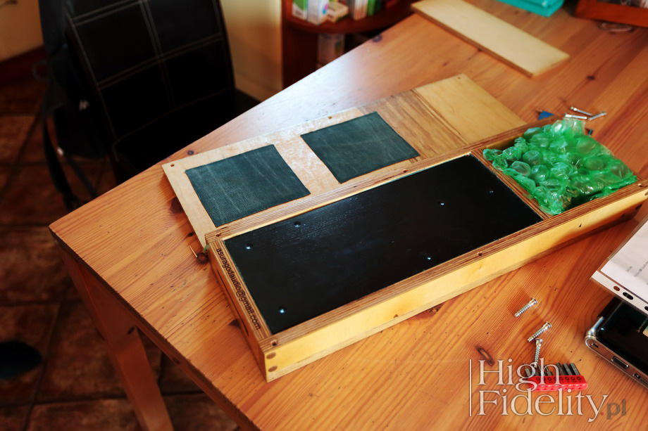 Mr Szymanik has treated audio as a hobby for the last 17 years. The anti-vibration platform under review is his first commercial product. It was built based on his experience and his research for the theoretical basis for the influence such accessories have on audio systems. The anti-vibration platform used under the power distributors has a dual role: it is primarily an anti-vibration element that converts vibration into a heat, but it is also a component that minimizes electromagnetic radiation from the distributor. The latter is not a new idea, of course, let me recall the active Tranquility Base platform from Synergistic Research, ground filters, etc. This particular product is an original blend of minerals and other elements combined with wood and leather. Importantly, the platforms are custom-made for specific power distributors/strips so that it fits into a wooden frame and its bottom is exactly adhered to the leather that closes the blend. Quality Recovery System Level 1 The platform is delivered in a large, nice plywood box. Inside one finds a board and three feet, as well as flat plywood element, which help to level the filling. The platform has a special design that Rafael called Quality Recovery System Level 1 (QRS L1). The feet are also wooden and have a distinctive shape resembling a rectangular triangle. On the bottom of the platform there are small milled pits that accommodate these feet. There are two options: for the "lazy" users, i.e. with three, equally aligned on shorter sides, and the "right" way with these pits spaced with respect to the center of gravity of the platform. Setting up the platform is not easy and I would prefer that these pits were larger. In everyday use, each time I had to move the platform I also had to set up the feet properly which takes time. Time that I'd rather spent listening to the music. The stand resembles a wooden frame with the bottom made of the same wood. Inside, an original mix of minerals and other elements was added, and to make sure it is not spilled, the mixture was sealed with a leather belt embossed with the company's name: ASURA (originally the brand was supposed to be called Rafaell's cable High End Audio and the platform was to be called HUMANIZER). The whole looks really good, reminding me products prepared by small Japanese companies. In my opinion this is not quite yet the same level of make and finish quality, but it is already very, very good. The key elements, is the QRS L1 technology. As Rafael says, it is the result of "converting 17 years of hobby and passion into something real, tangible and effective." Over this period, he created many audio-related products including interconnects (passive and active), power cables and some other that improved performance, or rather "removed obstacles and traps in the audio system that affect the music that we hear from loudspeakers." To quote his product brochure: With QRS L1 I focused on improving working conditions for power strips/distributors and achieved enhancements in three aspects: