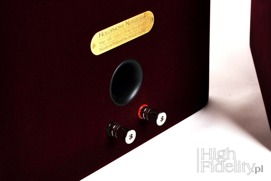 NUMER CZTERY / NUMBER FOUR Better, right? But even if we combine these two introductions we will not be prepared for what the Avatar Audio loudspeakers looks and sound like. This time the model Number Four (or number 4 or No. 4 - the manufacturer uses all these forms) is the smallest in its range, but you can't really call it small. Like the rest of the Holophony series, it features two large conical drivers from 1970s with AlNiCo magnets and paper membranes. This is a two-way, stand-mounted loudspeaker. They measure 380 x 330 x 330 mm (H x W x D) and each weighs 13 kg. On the manufacturer's website you will find pictures of version with standard finish, but for the test we received the flock version, meaning covered with velour-like fabric. It looks great and although it was intended to minimize reflections, it is a big change in aesthetics compared to popular wooden-veneer paradigm. Due to such looks, these speakers instantly fit into my idea for the "master of the house" study, or the "lady of the house boudoir", combined with a turntable and everything I associate with "analogue" sound. The loudspeakers look so nice and intriguing that my wife, who usually dislikes the majority of, as she calls them, coffins that land in our room, said that she could live with them, although she would change the color to a “creamy” one. That's a huge complement coming from her. The drivers of this type are characterized by short-throw membranes. This means that they are more susceptible to vibration and all information has to be reproduced within a small range of diaphragm movement. Mr Cezariusz solved this problem by proper separation of loudspeakers from the ground (in the “Listening” section you will find a micro-test of the Receptor No. 1 feet) and vibration suppression achieved via specially designed and built cabinets. It's a complex design that took Avatar's boss several years to develop. Since there have been many proprietary solutions used in this product, I asked the designer present them in several points. After the test is published you will find them also on manufacturer's website. ![]() CEZARIUSZ ANDREJCZUK Holophony Number Four, the smallest model in Avatar Audio's lineup, is built according to the same rules as all our loudspeakers. Below you will find the 20 rules I always follow. DRIVERS 1. Very low power (maximum 20W), so that the membranes can be very light and gently suspended, and thus be able to reproduce the smallest details with the highest precision and speed. CROSSOVER 3. Extremely simple 1st order crossover, so as not to lose the dynamics, resolution and coherence. DRIVERS ARRENGEMENT 9. All drivers are placed on the front panel facing the listener to provide the fullest, most direct (not distorted by reflections) contact with the transmitted information. CABINETS 12. As narrow front baffle as possible to minimize reflections that degrade tone depth and precision of instruments placement ![]() The speakers were compared to my reference ones, i.e. Harbeth M40.1. They were placed in exactly he same position, i.e. 130 cm from the rear wall (distance from the front baffle), 230 cm apart (distance between tweeters) and 245 cm from the listening position. It took me a moment to figure out the best toe-in angle - remember that conical speakers of such a large diameter as here are very directional in the upper part of the band. Eventually, the speakers were toed-in so that their axes crossed just in front of my head. The loudspeakers were driven by a powerful solid-state amplifier - the same one that I used during my all tests, the Soulution 710. I used Acoustic Revive SPA-3.0 Triple-C speaker cable. ![]() Recordings used for the test (a sele- ction)