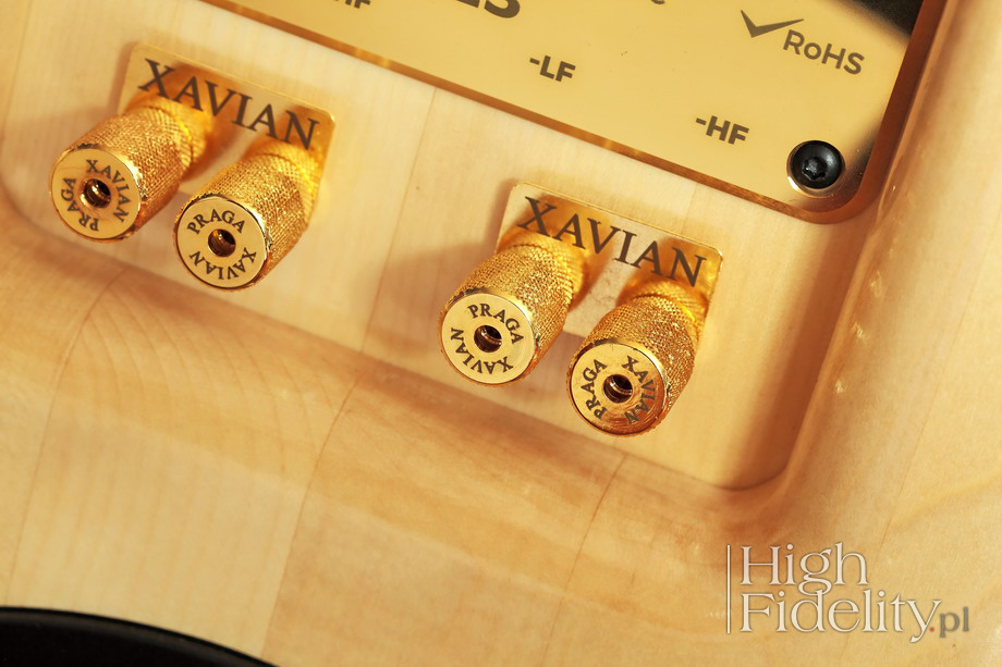 Loudspeaker features double speaker terminals, i.e. it is adapted for bi-wire and bi-amping connection. The terminals were placed in a recess in the rear wall together with a gold-plated name plate; they are custom-made for Xavian. However, it would be nice to place them two or three centimeters higher, because they are too close to the bottom edge of the cavity, which makes it impossible to install spades from the bottom. The terminals feature thick pins, so not all spades will fit in. Cabinets were made of real wood – it is glued together from 23 mm thick maple boards with walnut inserts. Inside it is damped with bituminous sheets. These loudspeakers look astonishing. ![]() Technical specification (according to manufacturer) Frequency range: 33 – 30 000 Hz (-3dB on reference axis) |