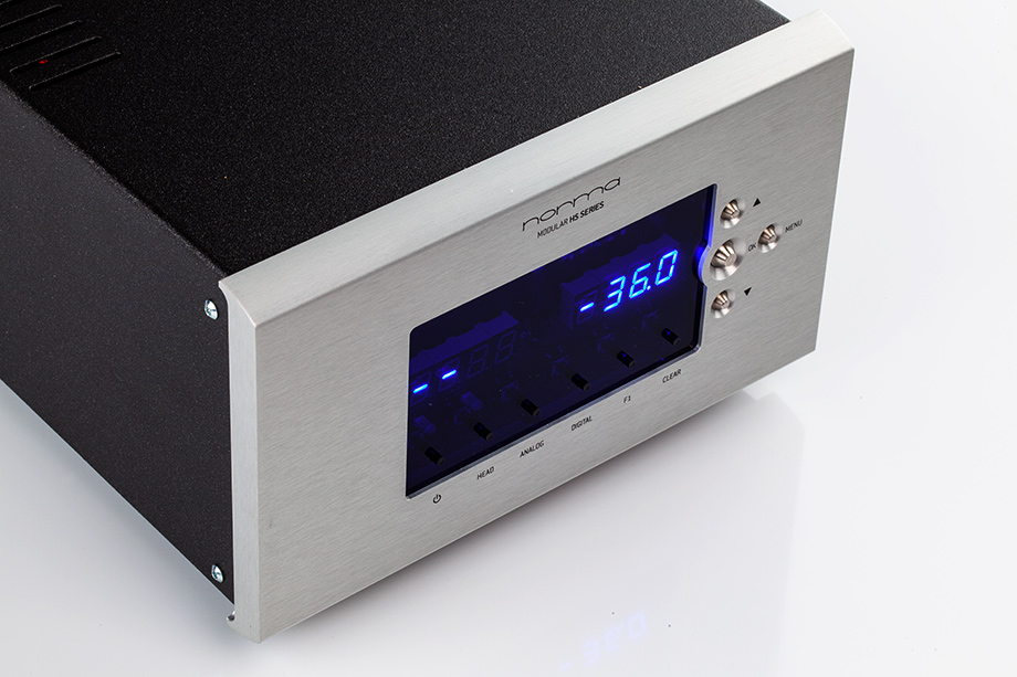 However, this is a part of the choices made by Mr. Enrico Rossi, there is no such thing as a "perfect product". The more so because the tested Norma amplifier is not a particularly expensive device. In this case, the key thing we need to remember is that these choices were made by a man who knew what high-end sounded like and what was the music played at home, who understood the specificity of "mechanical reproduction". That is: something new, independent of the original event, which is to recall those emotions, and not that "sound". That's what Norma does excellent. The designer coped with the bass issue in a similar way. It was the Achilles' heel of most amplifiers utilizing MOSFET transistors in the output - their sound was too warm and bass too soft. Here, too, it is warm and soft, there is no doubt about it. However, it is perfectly coordinated with the lower midrange, it never occurs as something separate, does not try to attract listener's attention. The tonal balance is set low, it's not a “thin” sounding device - on the contrary, it's a rich, dense sounding one. This "compatibility" was achieved without pushing the lowest bass to its limits, without trying to pretend that everything can be done at an equally high level. The lowest octave is therefore gently withdrawn and sounds in the background of the upper part. I will offer a beer, however, to anyone who can realize that within first minutes of listening to this amplifier (without knowing about it up front). The whole presentation is so complete that without a direct comparison with a bigger and more expensive amplifier, one won't even notice that. Both Jarre's electronics and the low-pitched Starboy and Kendrick Lamar recordings were played with the momentum and the punch they deserve. | DAC1 The digital-to-analogue converter, an optional card that can be added to the Norma amplifier, has a tonal balance set slightly higher than the amplifier itself. It also delivers an open sound with good dynamics and nice timbre. It's about showing details in a pleasant way, conveying recording's ambiance, keeping everything under control. It is a very likeable presentation. Interestingly, the sound stage is wide, and the foreground is not as close to us as when using an external CD or file player. For example, the sound of Lumïn T1 was much warmer and more velvety. In turn, DAC in Norma was faster and more open. It's a nice DAC, with no ambition for super-resolution or differentiation. It offers a smooth, open, very pleasant performance that will work with any type of music and any source. | HEAD I would treat the headphone output as a supplementary element of the amplifier. If you often use headphones and this is an important way listening to the music for you, then you should know that the "Head" option will not replace a dedicated external headphone amplifier. However, if it is something extra for you, even with good headphones you will get a satisfying sound. Its tonal balance is set higher than when playing with loudspeakers, so a selection of proper headphones will be important. I would start with those with a warmer than usual sound. The resolution is OK, but - as I say - it is about expanding the amplifier's functionality rather than suggesting that we get "two in one" device. Podsumowanie The Norma amplifier is a modern device. My point is that its sound suggests that its designers really gave a thought to limitattions of individual solutions and - more importantly – offered a concrete proposal on what to do about it. Because we get a warm and dense sound that is dynamic and open and resolving. Which means that the qualities of MOSFET transistors are well utilized but without their drawbacks, such as limited resolution and slowing down the sound. And the only thing that could not be solved, i.e. well-defined lowest bass, was bypassed by the skilful shaping of its timbre. This is a great example of the fact that techniques that seemed to have fixed set of qualities and downsides attached to them can be used in a much more creative way, thus bringing the listener closer to the music. Hence, a deserved RED Fingerprint Award. ![]() The HS-IPA1 amplifier is part of the HS series and is referred to as a "modular amp". At its core there is a classic integrated amplifier that delivers 75 W to 8 Ω load and 150 W to 4 Ω. Doubling the power while halving the load impedance suggests a highly efficient power supply. The device has different proportions than those commonly used - it is narrow and deep. The housing is made of aluminum - a chassis is made of bent sheets, and the front of a brushed lobe. This amplifier features aluminum feet with a felt bottom. Front | The front of the device is in fact a row of large, visible from a considerable distance (hurray!) LED displays with a blue filter. These allow user to read volume level, the selected input, and after installing the extension cards also the parameters of the digital signal (DAC) or gain (phono preamplifier). The display also serves to visualize the commands we issue in the menu. One can use the buttons on the front panel to navigate through it. Same buttons allow us to adjust volume, and the small ones, just below the display, activate the appropriate options - headphones, DAC and phono preamplifier. Rear | The rear of the device in the version we received for the test is fully filled. You can see the division into individual sections. At the top, there is a digital part, next to an analog one, and loudspeaker outputs underneath. All sockets feature gold-plated contacts. There are five digital inputs: two RCAs, two TOSLinks and one USB. There are four line input and two of them can reconfigured for other use: input No. 2, after installing phono module changes into a phono input, and input No. 4 can be turned into fix signal linear output using proper option in a menu. In the tested version, the headphone output was already "on board", hence the presence of headphone output