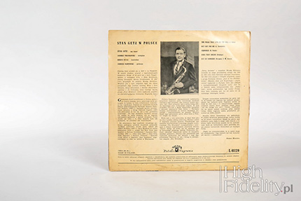 | Here comes an album… This is a special recording - I hope that now you can see it clearly. Although nothing indicated it. Its status was made up of various elements, in which the most important was the fact of the jazzman from the world's top recording an album in Poland. As Krystian Brodacki wrote: It is not that this first contact with the saxophone genius, with the heights of jazz art, has had a huge impact on everyone, but about a certain aspect of this visit - he was the first such prominent musician from the USA who decided to give live performance with the Polish rhythm section. Andrzej Trzaskowski in the re-issue of the Stan Getz Quartet… from 2008 wrote: Getz had a special gift that only eminent virtuosos have - the absolute power over the instrument. His saxophone moved around the vast world of unpredictable invention. Each, even the tiniest note, jumped from the instrument perfectly polished and beautifully colored. The second element is the low availability of the records in good condition. First, there are only a few copies left in the market, and secondly - those that survived were played on extremely primitive turntables. On the Polish market, mainly rigid turntables GE-56 were available, usually mounted on radios or in a suitcase. On the basis of the latter, the popular "Karolinka" was created, and in the 1960s the Bambino model. Thanks to this we are dealing with a real rarity being part of Polish history and culture, which is the first signal that the Polish Jazz series will "break out" in Poland soon.