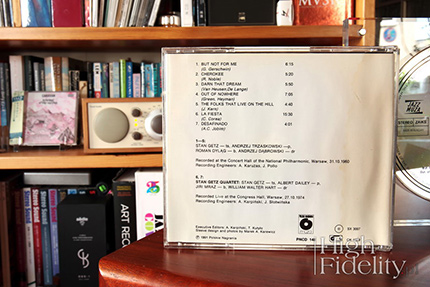 Polskie Nagrania PNCD148, 1991 | We had to wait for a full re-edition until 1991, when the Polskie Nagrania re-issued it in the form of both LP (SX 3007) and Compact Disc (PNCD148) as well as a cassette (CK 1189). They changed not only the cover, this time presenting a photo by Marek Karewicz, but also the title - from now on it was Stan Getz in Warsaw. The justification for these changes could have been the addition to the five basic tracks of two more, recorded live in 1974, when Stan Getz visited Poland again. The producers of this release were Mr. Andrzej Karpiński and Tomasz Kutyło. Mr. Karpiński was a director of recordings from 1974.
