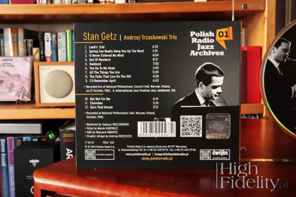This is the first edition that I could call "nice" looking. Black and white photography by Karewicz, well-chosen typography and its color, as well as the logo of the "Polish Radio Jazz Archives" series result in a neat whole. The person responsible for this project was Andrzej Brzezicki, and mastering was done by Mr. Tadeusz Miecznikowski. Unfortunately, the edition is very poor - it is the simplest digipak with a stiff cover and no booklet. And yet it was the perfect opportunity to prepare a booklet with pictures from Jazz Jamboree '60. The Polskie Nagrania did a good job with this release - both in terms of historical and sonic perspective. The historical one is clear - this is the first professional edition of Getz concert from Warsaw. One can perfectly hear that he was a musician who performed best on stage and in this case on stage with three Polish musicians. The studio recording compared to the concert one is polite, calm, as if Polish musicians were afraid of "over-leaning", and Getz often had to rest. In terms of sound quality, the new mastering is much closer to the Gambid Records release, meaning it has a lot of treble and bass. I think that the double bass was particularly well presented here, while on all previous editions it was a bit "box-like" and not very clear. Here, at last, it sound includes a full box, it is clear and melodious. The other instruments, however, do not convince me. It seems that a stronger compression was used than on the 1991 edition, which brought the saxophone and piano closer, reducing the amount of reverberation. However, I lacked firmness, some "truth" that so impressed me in the version of Polskie Nagrania. So despite the fact that the new master is more precise, you can hear the progress in digital technology, I still prefer the Stan Getz in Warsaw from 1991. And I will listen to the Polish Radio Jazz Archives album for the concert tracks - it's mono sound, but - when it comes to saxophone - very nice, very real. Only drums are poorly presented.
