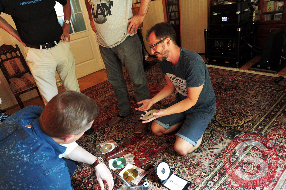 CD vs CD-R Jarek | This time I agree with Janusz, that after the first bars played by the piano it was clear that the CD-R version had a much better reverb - we could hear a larger room and some pedals. Tomek | I agree with Jarek, with the exception of information about pedals, I am not so familiar with this aspect. But the advantage of the CD-R version was clear. Maybe not huge, but worth the money. Janusz | In my opinion, the differences were really important. The first thing that struck me was that the entire presentation of the CD-R was slightly moved away from the speakers. Better, larger space and depth were created. There was more information that made performance more friendly. It was simply more pleasant to receive. Wiciu | These were not very big differences, although I could hear that there were different presentations. In the first version, I wondered for a moment whether it was definitely an acoustic piano, and in the second one it was clear. But again, for me the differences were minimal. CD-R vs GOLD CD-R Jarek | We are moving forward - definitely there was more sound from the piano. The pianist would probably say that there is more ornaments and other elements. You can hear more of the pianist skills on the Gold CD-R. Tomek | Unfortunately - this difference was beyond my perception, I can not say how these presentations differed from each other. Rysiek | For me this time the difference is significant, with the Gold CD-R being much better. The richness of color, musicality, swing appeared - this CD started to play music, not sounds, it only started to draw me in emotionally. Already after the first three seconds I knew that I'd definitely choose this version. Janusz | For the first time I agree 100% with Rysiek. The thing that struck me, after the first sound, was that the whole musical and sound event moved back behind the speakers line - it went deep. I saw that this event has a certain space, a place where it was recorded. Here I heard something that was not there before. Besides, I heard something that my body liked. I do not know why this is happening, but when my body likes music, it means I do not want anything more and I do not want to waste time on something else. What we are fascinated with, it means tone, space and so on, it's nonsense, it has nothing to do with music. But I know that this is a way to the truth - and ultimately the music has to grab you and this is the real high-end. Wiciu | I can not speak so beautifully, but I can say that I agree with Tomek in that - for me - these were not differences I was able to capture during one listening session. I am sitting in the best place and I have the impression that I am in Fatima, but in a group of those who can not see anything... Maybe because this album is very well produced, and for me every version is fantastic. Gold CD-R vs Glass Master CD-R Jarek | This time the difference was the largest. Already in the first chords one could hear the second instrument, that is, the room in which it was recorded. In certain chord sequences, it began to be equivalent to the piano. The moment when the drums came in was similar, but from the drums it was again a different performance. The sound with Master Glass was vivid, dynamic, quite different than with Gold CD-R. It is a pity that it costs so much and it is so fragile. Tomek | In my opinion, the amount of information, audiophile subtleties you are talking about, there was too much of all of it on the "glass" version. The “swing”, that Rysiek spoke earlier about, and which was present on the Gold CD-R version, now got lost somewhere. It's just a very good recording, similar to the ones we listened to on the previous three versions, and that's why even the basic one was impressive. On the medium itself, apart from its collector's value or the form of capital investment, I would not allocate so much money. It was different with the second song - this time the Glass Master sounded absolutely fantastic, just unbelievably good. I have to take back what I said earlier. Perhaps the "glass" disc requires a prolonged listening, but after the next song I have to say that the quality of this sound knocked me down. Damn, maybe it is even worth the 3500 zlotys in order to listen to something so good on a system of this class. Rysiek B. | Another version and yet another progress. The first noticeable impression is the length of the piano's decay, the acoustic environment, which Jarek mentioned - I heard it as a "bigger" and more spectacular piano - all this clearly speaks in favor of the Master Glass CD-R version. Ultimately it was a gentler presentation and even more musical than the Gold CD-R version, and therefore pleasant to listen to. The music has lost some of its focus, but it has not lost its emotions. I choose the "glass" version. Janusz | I have my own release on this medium - the Gould disc - but it's just one instrument. Here there are three and you can hear even better what is the advantage of the Glass Disc - that's what nobody talked about and nobody would, because these people do not know what they are talking about! They have good systems, phenomenal really, but their systems are not able to show it – namely a good system should not present space, details, subtleties, because it is – no offense - for children from the first grade. Firstly and lastly it should convey the attack, the sound that comes out at a given moment and we should hear it at that moment. It's a sound attack. And Glass Disc shows it, and no previous version did. Rysiek B. | It was just more enjoyable, somehow it sounded better physically, right? Wiciu | Yes, that's exactly what it's all about. What Ryszard said was true. In my opinion, the overall improvement after switching from Gold CD-R to Glass Master CD-R was not big, but the "glass" version was more enjoyable, more pleasant, even though there was more information. It is finally a version with which the piano was just a big acoustic 