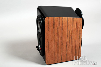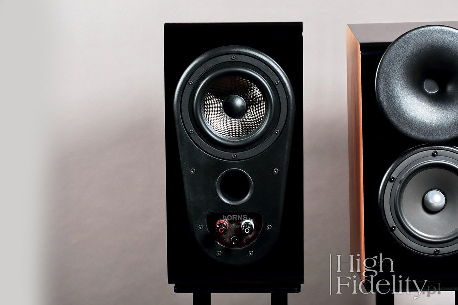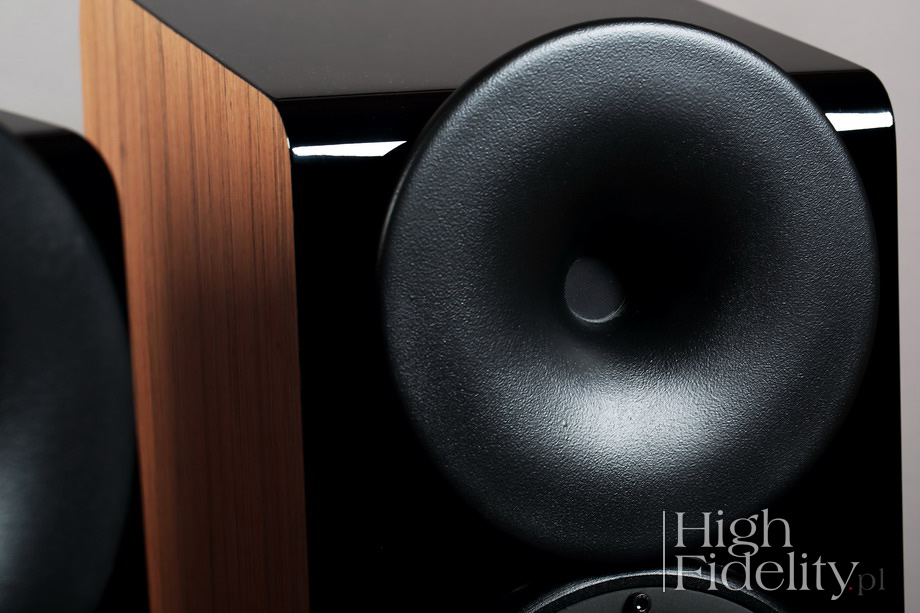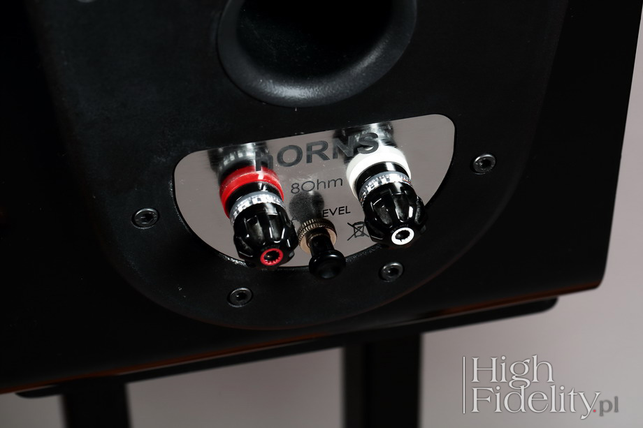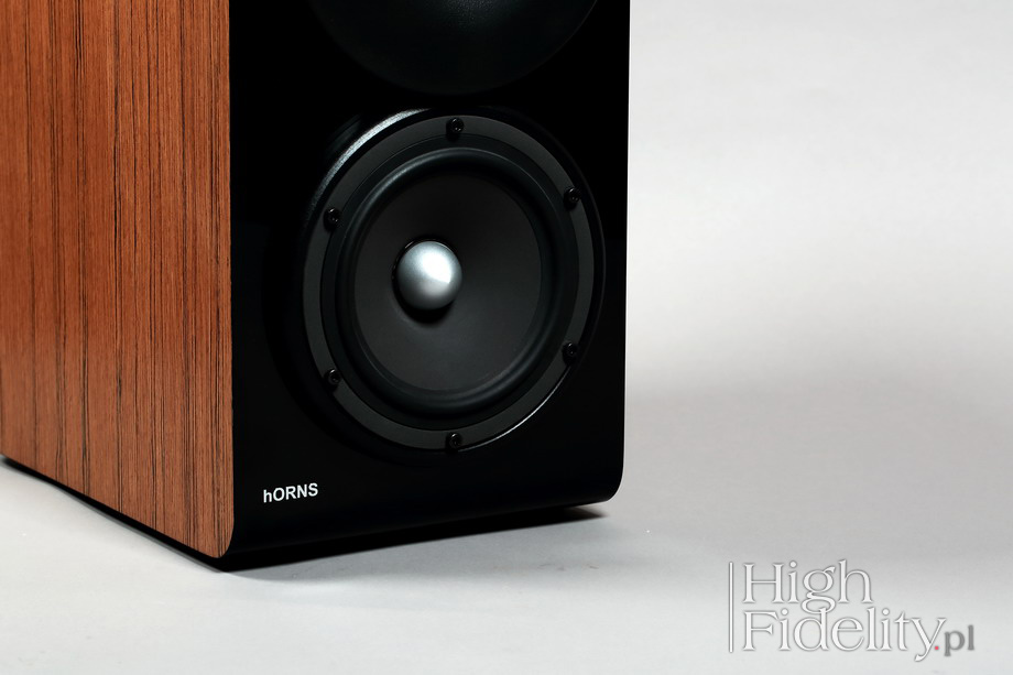 The Atmosphere, however, are suitable not only for calming the presentation down, because they do not color anything and seem very transparent. And yet this intimacy, if it's there in the particular recording, is something natural for them. And Julie London from the Julie is her name ... Vol. 1, released on the HQCD in 2008 by EMI Music Japan sounded in such a natural way. A sexy voice, Barney Kessel's guitar, Ray Leatherwood's double bass – just these three elements and an amazing result. Because these are speakers that are transparent and resolving on the one hand, and smooth, delicate, attentive on the other. They do not charm with unnatural bass extension, setting the whole sound right away - so that we do not even wonder if there is anything missing or not, focusing on music instead. It is obvious that comparing them to larger speakers, I don't mean only my mighty Harbeths, the lack of a lowest notes in electronic music, in a large orchestra's sound, in a rock concert will be clear from the very beginning. As long as one understands what this presentation is about, it will not be a problem. Because the coherence of this sound is incredible. It's an immersive sound that does not discriminate recordings, does not dominate the music. Unlike other horn loudspeakers, moving your head while listening to the music does not adversely affect timbre or focus - so you can move and listen to the music without feeling that there is only one spot that allows you to get optimal sound. This is a huge advantage and in this respect, the Atmosphere are better than most loudspeakers - not only the horn ones, but also classic ones. This quality is particularly obvious when listening to mono recordings, which are usually excellent in their naturalness. I started this description from Julie London, but before that I listened to the excellent Penthouse Serenade by Nat 'King' Cole, which featured both this session and a later one, from 1952, already with the vocal in the lead role. Both versions, i.e. the piano trio and the beginning of Cole's commercial success as a vocalist, were presented by hORNS as a dense, ambiguous, dynamic whole. But it is about dynamics that is slightly hidden underneath, that never dominates over music. It allows you to perfectly capture the differences between individual recordings and even between tracks on the same disc. They shows the advantages of older recordings over new, compressed ones. However, they never treat the latter in a particularly cruel way. The Depeche Mode maxi-single It's No Good, a classic example of heavily compressed, electronic music with classical drums, sounded very good, although it was also clear that it was dynamically flattened. And whatever album I played, each time I had to say that these speakers played it with class, in a smooth, coherent way. Which shows how good a horn can be if used properly and how well it was done in this case. The treble is resolving, detailed, and at the same time they sound more pleasant than with most dome tweeters. This is a direct presentation, without a “veil” on the tweeter. And at the same time it is also silky. | With or without radiator? The Atmosphere speakers project a large, very natural sound stage. They go deeper than other horn speakers - and many of those have a problem with that - while building a broad perspective. The foreground sits on the line connecting the speakers and it is full and focused. The elements on the listening axis, that is most often the vocals, are large and clear. These elements are never emphasized though, or over-interpreted. This happens even if, as in the case of the aforementioned Julie London, as in the recordings of Diana Krall, Chet Baker, Adelle, etc., the vocal is the most important element. Their weight is determined by these loudspeakers using purity, clarity, insight, and not by bringing them closer to listener. That's why classical music recordings, where the right perspective is key, also sounded so good. Summary The Atmosphere are clean, dynamic, transparent sounding loudspeakers and they do not focus on any of these qualities in particular. Their small cabinet does not let them go very deep in the bass, but choosing stand-mounted boxes one should not expect it. They will offer everything that this kind of speakers is liked for, above all, a big sound stage,, they simply disappear from the room, they deliver precision, but no coloration. There is also this wonderful smoothness, fantastic treble and dynamics, which is there to support the presentation as a whole and not to impress listener with it. These are amazing loudspeakers that in a right room with the right amplifier will be the shining star of any system. ![]() The Atmosphere are two-way stand-mount loudspeakers in vented cabinets and a passive radiators that might be switched on and off. They are heavy, due to the robust cabinets and drivers. They use a 25 mm (1") compression tweeter with aluminum membrane loaded with a horn. Its profile was calculated by the hORNS engineers. The horn has the same diameter of 198 mm, as a low-midrange woofer with a flange that extends it in front of the front wall. The 180 mm (7") low-midrange driver with is the SEAS W18NX-001 model from the Nextel series with a paper membrane and a solid, cast basket. In the center of the diaphragm there is a silver phase plug, which also works as a radiator cooling the coil. Nextel is a process of covering the membrane with a material that reduces distortion and smoothes the frequency response. On the back you can see another driver of the same diameter. This one comes from Polish company STX and it features a rigid carbon fiber braid diaphragm. It has been loaded with bituminous mats, and the driver itself is not connected to the signal. Its terminals can be shorted, which limits the diaphragm movement. One uses a pin to shorten the terminals. These are high quality WBT terminals. Above there is a bass-reflex port.