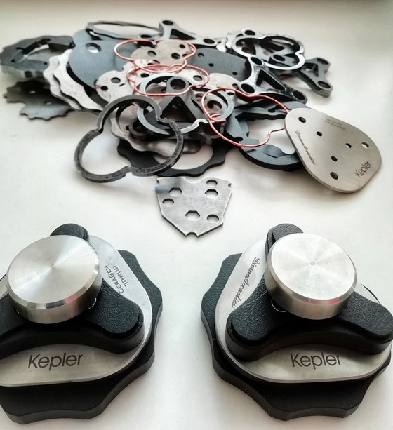 In this way, an idea for anti-vibration feet for the speakers was born. The ones that would replace the standard spikes and which would not degrade the sound at the same time. A necessary condition to meet was also the small height of the feet, so that the speakers placed on the Keplers would not become taller than on standard spikes. I also wanted to be able to adjust the height and make it as easy as possible - hence the housing features threads and a polygonal adjusting ring, so that it can easily be rotated on the floor. Keplers were also supposed to work on the carpet, because not everyone puts their speakers directly on the floor. I did not want to duplicate other solutions, so I did not use either balls or bearings. After a few months and after making surely more than 10 prototypes, I gave a few pieces to my friends for evaluation. And they, instead of placing them under the speakers, put their feet under preamplifiers, DACs and transports. And it started again ... A wish list came to me, so that it would sound so and so and that the sopranos would be such and such, and the midrange would be better, and... and.... The prototype number 23 or 25, I am not even sure anymore, was the one chosen for production. It took me about a year to finish the project.