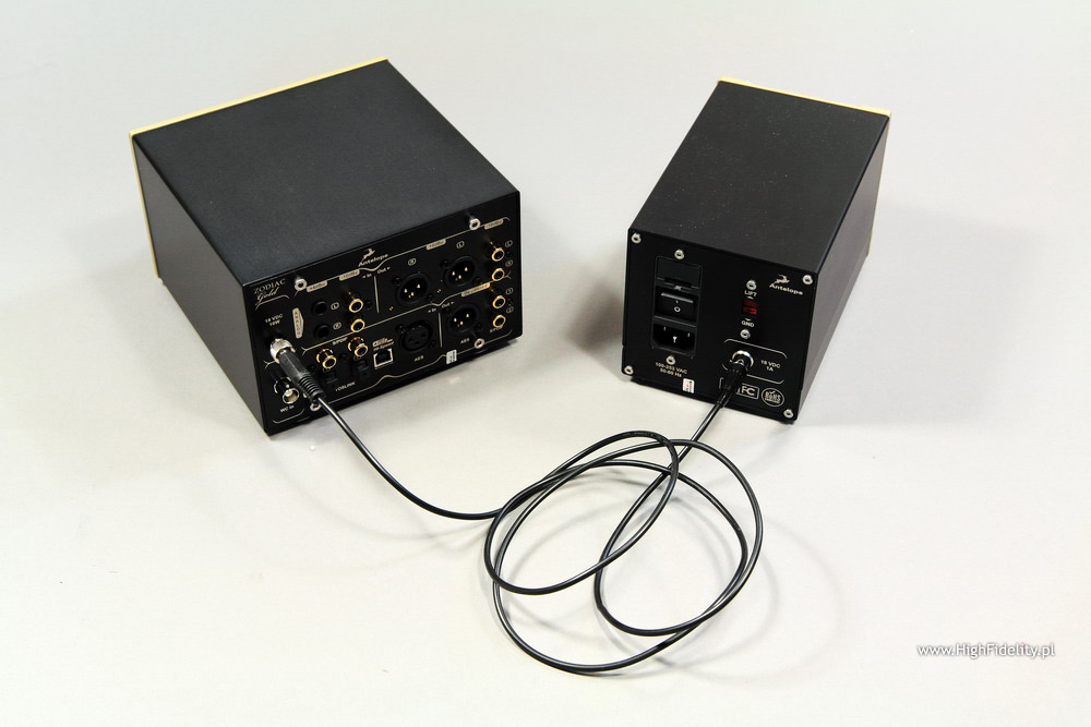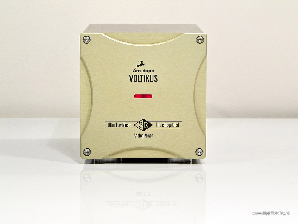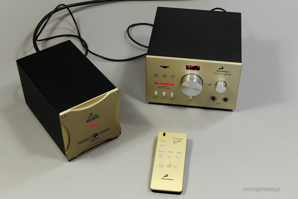 Ale do rzeczy – zegary mają zastosowanie tam, gdzie mamy układy cyfrowe. A jednym z najbardziej narażonych na jitter systemów cyfrowych, takim, w którym mamy bezpośrednie przełożenie jego redukcji na dźwięk, jest przetwornik cyfrowo-analogowy. Tak więc w Antelope Audio opracowano serię trzech „Daków”: Zodiac, Zodiac+ i testowany Zodiac Gold. Z Tego punktu widzenia można założyć, że wszystkie są swego rodzaju produktami „pokazowymi”, mającymi wykazać użyteczność zegarów. Szkoda więc, że do testu otrzymaliśmy DAC bez zewnętrznego zegara. Za to dostaliśmy cos innego – opcjonalny, zewnętrzny, duży zasilacz Voltikus.