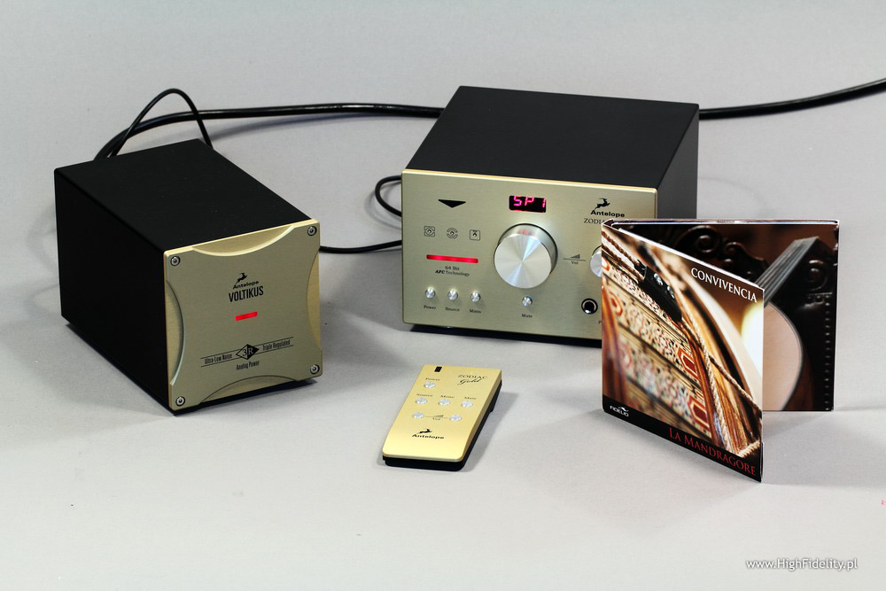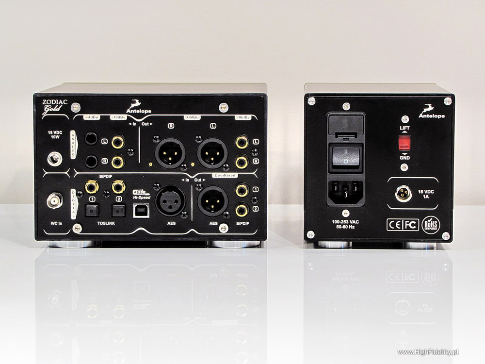 Zodiac Gold to niezwykłe urządzenie. Pochodzi z firmy Antelope Audio, wymyślonej i zarządzanej przez Igora Levina. Firma ma swoją siedzibę w Sofii (Bułgaria), jednak komponenty do urządzeń pochodzą z trzech krajów – Bułgarii, Niemiec oraz Chin. Jej urządzenia po raz pierwszy zobaczyłem w czasie wystawy High End 2010 w Monachium. I, prawdę mówiąc, najpierw uwagę zwróciłem nie na przetworniki – a w ofercie są w tej chwili trzy – a na urządzenia stricte studyjne – generatory zegara wzorcowego. Tak, rzecz w świecie audiofilskiego audio mało znana, w studiu jest podstawą wszelkich działań. Dzięki zewnętrznemu zegarowi można zsynchronizować wszystkie cyfrowe urządzenia, a także poprawić stabilność taktowania. I właśnie ta ostatnia cecha spowodowała w ostatnim czasie ogromne zainteresowanie zewnętrznymi zegarami.Najbardziej spektakularne przykłady ich zastosowania dały firmy dCS - z zegarem Scarlatti Master Clock – oraz Esoteric z G-0Rb oraz G-03X. Warto dodać, że ultra-stabilne zegary stanowią podstawę dla patentu XRCD i K2. JVC używa zegarów Esoterica, modelu G-0Rb, który oparty jest na oscylatorze rubidium. Oznaczenie to znajdziemy też na wielu innych, japońskich reedycjach, chociażby Universal Music Japan.