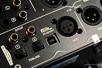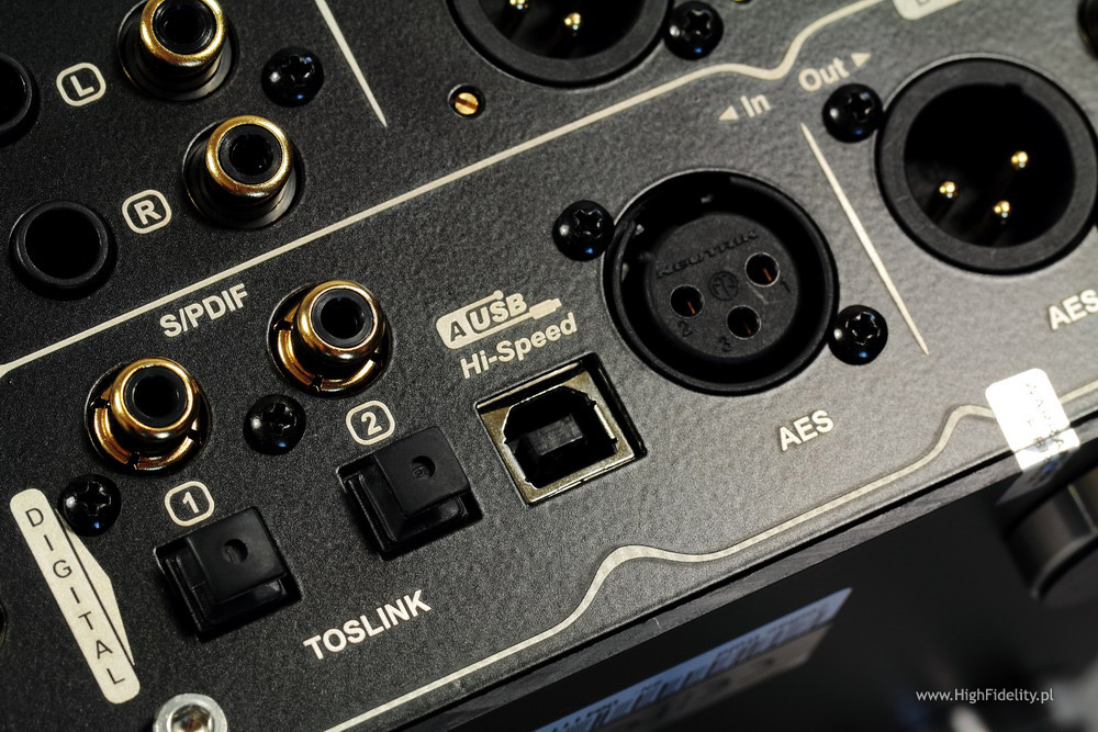 Wygląd tylnej ścianki wiele mówi o tej ostatniej. Tył został podzielony na dwie, poziome części – górna odpowiada za część analogową, a dolna za cyfrową. Zacznijmy od tej drugiej. Wejść cyfrowych mamy aż sześć – dwa elektryczne RCA, dwa optyczne TOSLINK, USB oraz AES/EBU. Wejście USB jest szczególnie ciekawe. Firma napisała bowiem swój własny driver, dzięki któremu wejście obsługuje sygnał o prędkości do 480 Mbits,  to oznacza, że możemy nim przesłać sygnał do 32 bitów o częstotliwości próbkowania do 384 kHz. To najbardziej zaawansowany technologicznie odbiornik USB, jaki znam – można za jego pomocą przesłać sygnał wysokiej rozdzielczości w formacie DXD, a niedługo – jestem tego pewien – sygnał DSD. Pozostałe wejścia akceptują sygnał do 24 bitów i 192 kHz. Obok nich mamy trzy wyjścia cyfrowe – AES/EBU oraz dwa elektryczne na RCA. Sygnał do nich nie jest prostą przelotką, ponieważ jest przetaktowywany i minimalizowany jest w nim jitter. I z boku jest bardzo ciekawe gniazdo BNC – to wejście dla zewnętrznego, wzorcowego zegara taktującego.Wyżej mamy część analogową. Mamy tam stereofoniczna parę wyjść RCA oraz parę XLR. Te ostatnie okablowane z pinem 2 jako „gorącym (2=hot). Niestety gniazda RCA są dość przeciętne i blisko siebie umieszczone – w teście musiałem użyć kabli Oyade z węższymi wtykami, rezygnując z zaufanych Acrolinków. I są jeszcze wejścia analogowe – niezbalansowana para RCA i zbalansowana para, ale nie na XLR (zabrakło dla nich miejsca), a na dużych-jackach fi 6,3 mm. Obok jest gniazdo dla zewnętrznego zasilacza 18 V DC. W podstawowej wersji to malizna w plastikowym pudełeczku, wyglądająca, jak zasilacz impulsowy. Różnica między nim i Voltikusem jest tak duża, że nie bardzo sobie wyobrażam, że można je rozpatrywać oddzielnie.