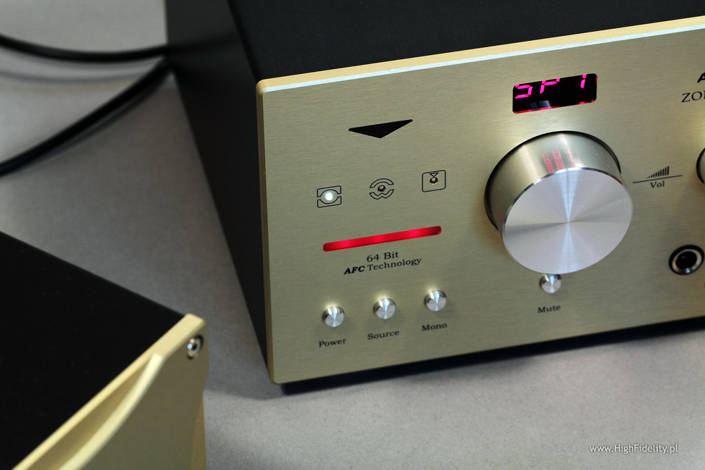 Tak, to solidne urządzenie, w dodatku świetnie spisujące się współpracując z dwoma parami słuchawek równocześnie. Myślę, że należy traktować je jako wartościowe uzupełnienie przetwornika D/A i wtedy wszystko będzie w należytym porządku.BUDOWAJego głównym celem jest jednak dekodowanie sygnału i ew. praca jako przedwzmacniacz liniowy. Zaskakująco dobrze brzmiał bowiem podłączony kablami zbalansowanymi bezpośrednio do wejścia końcówki mocy Soulution 710. Było trochę lżej, trochę jaśniej niż z moim Airem, ale wpięcie DAC-a do przedwzmacniacza Ayon Polaris III wcale sytuacji jakoś nie pchnęło do przodu. Myślę, że Zodiac Gold z zasilaczem Voticus spokojnie może być centrum wysokiej klasy domowego audio. Bonusem jest możliwość odtwarzania przez USB dowolnych plików, nawet 32-bitowych. Tak, mam takie pliki – pan Damian Lipiński, właściciel studia masteringowego Vinyl Magic, rekonstruujący nagrania winylowe w domenie cyfrowej, przy 32 bitach z przecinkiem (wywiad TUTAJ), przygotował dla „High Fidelity” specjalną płytę audio-data z nowymi nagraniami z kilku maksi singli, z materiałem w 16, 24 i 32 bitach. Przejście z 16 na 24 bity daje kolosalną poprawę dźwięku. Jednak nawet przejście z 24 na 32 bity dodaje coś jeszcze – głębsze tło, lepsze „odejście”, nieco ciemniejszy, ale i bardziej naturalny dźwięk. Zodiac świetnie te zmiany pokazał. Bo to bardzo solidne urządzenie. Niezwykle zaawansowane technologicznie, wiarygodne i niezwykle wszechstronne. Wzmacniacz słuchawkowy – jako bonus.