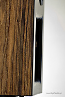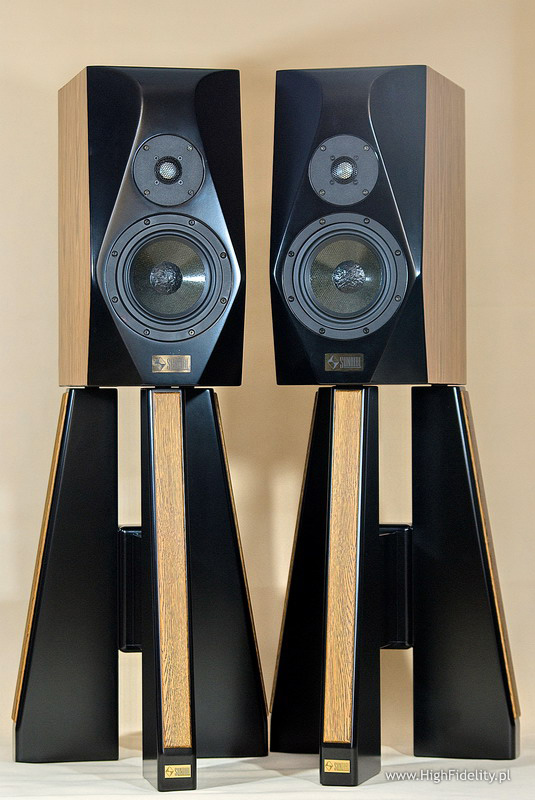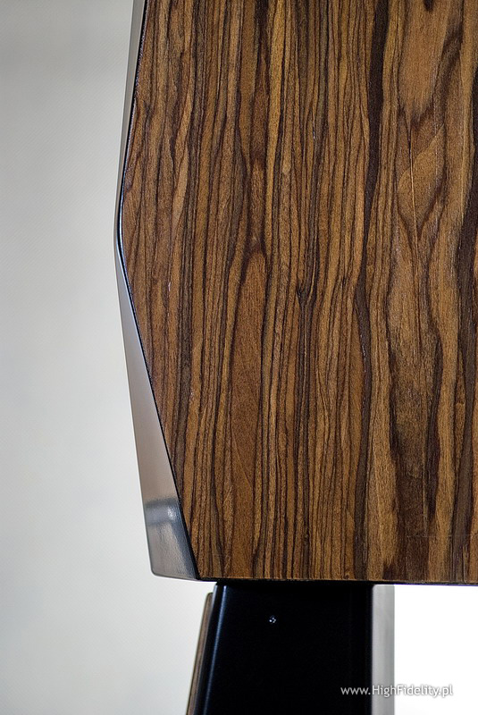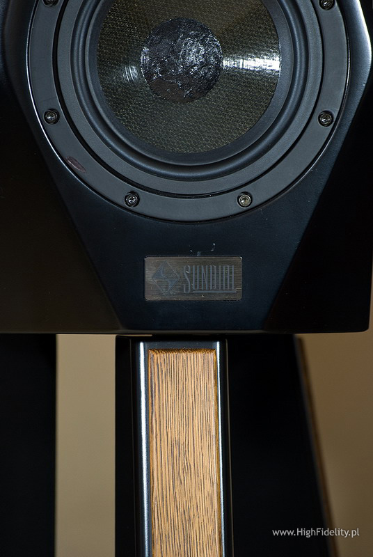 Podobne wrażenia mogę odnieść do średnicy, co nie dziwi, zważywszy że obsługuje ją ten sam przetwornik z bardzo sztywną membraną Hexacone. Ten zakres również jest dostarczany w mocny, wyrazisty, nadzwyczaj transparentny sposób. Razem z metalową kopułką Seasa Eton dostarcza ogromną ilość detali i robi to w bardzo uporządkowany sposób. Dzięki temu z jednej strony można niektóre nagrania odkrywać na nowo, zagłębiając się w różne smaczki, które wcześniej ginęły gdzieś w tle, a z drugiej jest to podane w łatwy do ogarnięcia sposób. Nie ma się ani przez moment wrażenia „zalania” detalami, których nadmiar potrafi czasem zepsuć przyjemność słuchania muzyki. Tu wszystkiego jest bardzo dużo, ale cały przekaz jest ciągle bardzo spójny, a owe smaczki jak najbardziej się rejestruje, ale bardziej mimochodem niż jako coś na czym skupia się cała uwaga słuchacza. Podobnie jak w przypadku basu, tak i analizując resztę pasma musiałem przyznać, że jest bardzo dobra – precyzyjnie pokazuje to, co jest w nagraniach - można by rzecz klasyczne „high fidelity”. Nie ma żadnego upiększania, oszukiwania – Sundiale pokazują to co im się dostarczy, tak wiernie jak tylko potrafią (a potrafią bardzo wiele). Jeszcze jeden aspekt wart jest zaznaczenia - sposób budowania przestrzeni. Choć w przypadku monitorów to niby oczywiste, to jednak muszę podkreślić, że i w tym aspekcie Rapidusy mają bardzo wiele do zaoferowania. Warto zadać sobie trochę trudu i popracować nad znalezieniem optymalnego ustawienia. Rapidusy odwdzięczą się obszerną i precyzyjną sceną, która zaczyna się na linii kolumn i sięga daleko w głąb oraz poza bazę kolumn. Wskazywanie źródeł pozornych, o ile tylko samo nagranie na to pozwala, nie sprawia żadnych problemów. Każde z nich ma nie tylko precyzyjnie określone miejsce na scenie, ale także konkretną, realistyczną wielkość i to w trzech wymiarach. To, że scena potrafi być ogromna wcale nie znaczy, że jest sztucznie powiększana. Jeśli w nagraniu pojawia się jedynie ograniczona wielkość sceny, to Rapidusy niczego więcej nie pokazują – kolejny dowód, iż twórcy przyświecała idea high-fidelity. To co w przypadku Sundiali Rapidus bardzo istotne, to fakt, że to posiadacz tych głośników zdecyduje jaki chce mieć końcowy efekt brzmieniowy – będzie chciał mieć przejrzysty, detaliczny i chłodny przekaz to odpowiednio dobierze do tego system, a Rapidusy zrobią swoje. Jeśli jednak woli nieco cieplejszy przekaz to wystarczy by właśnie taki sygnał system dostarczał Sundialom, a one są w stanie to przekazać i to nie tracąc swojej szybkości, dynamiki i precyzji. Przy kolumnach, które same z siebie ocieplają prezentację pierwsza z opisanych opcji jest właściwie niemożliwa do realizacji, z czego wynika, że Sundiale Rapidus są znakomitymi i na dodatek uniwersalnymi kolumnami. BUDOWASundiale Rapidus to całkiem spore dwudrożne monitory w obudowie typu bas-refleks. Ważną rolę odgrywa warstwowa obudowa, którą wykonano z szeregu kolejnych elementów wyciętych z MDF-owych płyt. Ścianka przednia, składająca się z kilku warstw ma grubość 48 mm. Ścianki boczne, oraz spód i górny panel tworzy szereg kolejnych kształtek o profilu ósemkowym. Tylna ścianka ma grubość 40 mm, „domykając” jednocześnie całą konstrukcję. Dobór geometrii poszczególnych kształtek jest nieprzypadkowy. Z jednej strony pozwala na uzyskanie większej sztywności obudowy, a z drugiej takiego kształtu komory, który sprzyja rozpraszaniu fal stojących. Również dzięki takim a nie innym kształtom elementów tworzących obudowę powstałą osobna komora, w której umieszczono zwrotnicę, co z kolei pozwala lepiej odizolować ją od przetworników oraz drgań obudowy. Także głośnik wysokotonowy umieszczono w niezależnej, izolowanej akustycznie komorze. Zastosowane głośniki to wysokiej klasy metalowa, aluminiowo-magnezowa kopułka Seasa, oraz przetwornik nisko- średniotonowy Etona, ze sztywną membraną typu Hexacone (m.in. włókna kewlarowe).