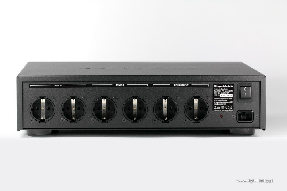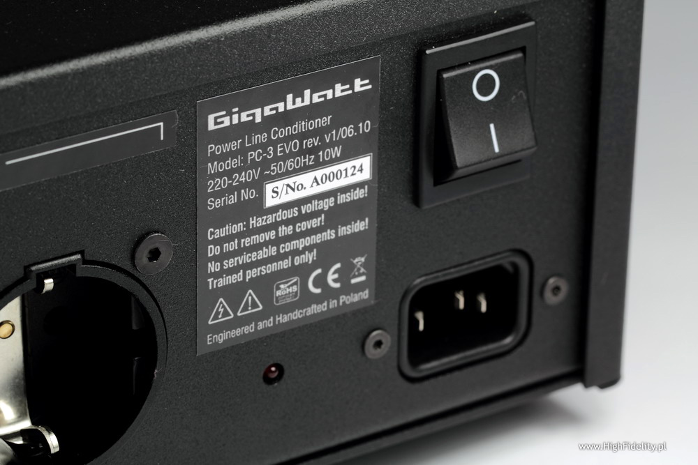 Jak pisałem, porównywanie tak zaawansowanych produktów „sieciowych” bezpośrednio ze zwykłym „gniazdkiem” (archetypicznym, bo przecież każde gniazdko jest inne; chodzi po prostu o gniazdko w obiegowym pojęciu jako dwie dziurki z prądem w ścianie) nie ma dla mnie sensu. Zmiany na korzyść filtrowanego, zbalansowanego, kondycjonowanego czy co tam jeszcze napięcia są dla mnie aż za bardzo oczywiste. Dlatego też nie traciłem na nie czasu i porównanie przeprowadziłem z moją referencją i z tańszym zestawem. Wiem jednak, że wielu spośród czytelników „High Fidelity” chce skoczyć od razu na głęboką wodę i kupić coś, co od „kopa” poprawi dźwięk całego systemu i to nie „trochę”, a „wyraźnie”. Gigawatt PC-3 EVO jest, według terminologii producenta, kondycjonerem sieciowym. Można oczywiście to przyjąć, choć warto zauważyć, że część pisma audio stosuje ten termin tylko do urządzeń aktywnych, takich jak Accuphase PS-1220. Dla produktów pasywnych, niezależnie czy mają postać listwy sieciowej, czy też „regularnego” urządzenia, rezerwując nazwę „filtr sieciowy”. Ja przyjmuję, że „kondycjonowanie” to „przygotowanie” i może być wykonane zarówno pasywnie, jak i aktywnie. Specyfikacja techniczna (wg producenta):