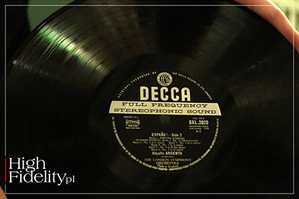Reference system In the case of multi-edition discs, and we will listen to two such cases today, getting to a "very early" or "very 1st press" copy is not easy at all. On one hand, there is the logic in matrix numbering, but on the other hand we will listen to an RCA release, which is a different case. In the early 1960s, the company pressed records at three different factories. And they did not use the same matrices for this, each factory used a different one, and all of them were the "first" ones made of the master. Meeting | Preparing this meeting, I chose the albums using a certain key. I didn't want us to listen to unremarkably recorded, mastered or pressed records. It would be a waste of time. We will use only good ones. In the case of the classical music, there will be examples of absolutely spectacular releases, in my opinion ones of the best. With the classical music releases I once fell into a trap - if it was a record from a record label that had good technology at their disposal and was known from good quality releases, even if they were titles outside the spectrum of my interest, I bought them. At some point I came to my senses. Now I have three labels that - in my opinion - assure certain quality. These are Decca, RCA, preferably the „Living Stereo” releases, and the third one is Mercury, also with the „Living Stereo”. Matter of price | In the case of 1st press albums, one of the most important things is their price. In 90% of cases, a first pressing is not more expensive than a re-edition. It is different though, in the case of records I brought with me. Each of these LPs can be bought for as little as $ 10. The better the copy, the more expensive it will be. You will see that these discs crack a little - not so much, but still. I adopted the rule that I don't buy LPs graded lower than "Very Good +", according to the "Record Collector Guide", which establishes standard of LP quality gradation (more HERE, accessed: 12.02.2020 - ed.). "Very Good" means a slight degradation in sound quality. There are various prices therefore on the market. But there is such a thing as a "price guide". In this version of the España, which I will show you in a moment, the "price guide" shows about 500 pounds level. But this applies to the "Mint" condition, which is impeccable. In the case of records with classics, this sometimes happens. But in the case of popular rock records - there is no chance. Buying a "II" by Led Zeppelin in perfect condition is, I think, out of the question. |1| España | Decca • SXL 2020 (1958)