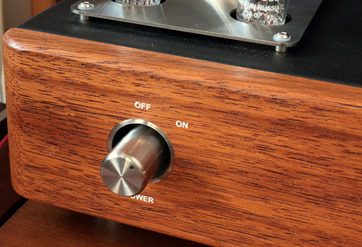 Accessories| The amp offers us the possibility to choose between two feedback levels (8 dB and 11 dB), using a small knob on the top panel. There are four line inputs, but there is no line output (e.g. one designed for an external headphone amplifier). There is no built-in phono stage or (which is even more obvious) DAC/Bluetooth receiver, either. It is a pure amp. However, we do get double speaker outputs from transformer taps at 4 and 8 Ω. Let me also remind you of the remote control again. Design| The amp makes a very good impression. It is robust, has good proportions and comes across as being really “pro”, but also affordable. The amp kind of resembles devices manufactured by the Italian Unison Research company – what I mean is the combination of wood at the front, the black cabinet, steel inserts and metal plates bearing the tube symbols on the top panel. |