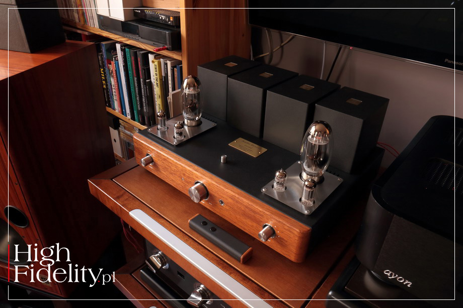 While constructing my first amp, I imagined that the people who choose a tube design for their systems know everything about the tube. In reality, however, they are only learning everything. That is why it is easy for companies to manipulate data, as it is not only power itself that matters, but also the way you measure it. And here it is possible to abuse information. That is why I try to give the lowest power values possible to obtain from my amps and not the highest ones – people who buy audio gear deserve to be treated fair. WP: How does your single-ended design differ from other designs of this type? The Second is similar to the First model, but it is a dual mono design. I have also used Hammond driver transformers. I wanted all the components to be the best, as one can hear everything with such a simple circuit. I wait for a long time for the tubes, as I order batches with specific parameters, which means they first need to be measured and selected. The differences in the parameters of currently manufactured tubes are enormous, much bigger than in NOS tubes. It is all time-consuming and much more expensive, but it’s worth it. ♦ The size of the tested amp is not impressive, but it takes two people to lift and carry it. You can try to carry it on your own, but it is not easy to find a good spine specialist these days and subsequent rehabilitation is more difficult to perform, so I advise you not to do it. Over 33 kg of weight is a serious burden – the enormous class-A Accuphase E-800 (200 W into 2 Ω) weighs only 3 kg more! Transformers| The weight of the device mainly results from the transformers and cabinet used. The former are much bigger than required by the design, but the constructor thinks that IT should be a norm. It is a dual-mono design with separate power transformers, so there are four large transformers made using a 0.3 mm EI annealing formers, additionally screened with a copper sheet, enclosed within thick steel screening cans. After milling, small brass plates with engraved transformer symbols were place on their tops. The power transformers were manufactured by Mr Ogonowski’s Polish company, while the output ones have come to Poland from the Canadian Hammond company. Cabinet | The cabinet has been made using 2 mm-thick steel sheets in order to maintain mechanical integrity, which is not easy to achieve considering the weight of the components. However, the front panel is made from Merbau wood. Stainless steel sleeves that match the knobs used are combined with it. All these elements are excellently made and they match one another. We use the largest knob placed in the center to control the volume. There is a small round window to its right and I initially thought it was a headphone output, but it is an infrared receiver. We also get a small metal remote control with the amp, including two buttons: volume up/volume down. On the right there is an input-switching knob (there are four inputs) and on the left – a supply voltage switch coupled with a LED. After power is turned on, the LED flashes, while after supply voltage stabilizes, it emits constant green light. Components| The manufacturer pays attention to using high-quality components. Apart from expensive transformers, there are Mundorf Supreme capacitors placed in the signal path, polypropylene Wima and electrolytic Nichicon capacitors, Vishay, Arcol and Ohmite resistors, and transmitters made by the Japanese Takamisawa company. The RCA sockets are made of gold-plated brass, while the signal pin – from copper mixed with tellurium. Cables in the signal path are made from oxygen-free copper. Solid aluminum was used to manufacture the feet fitted with rubber O-rings.